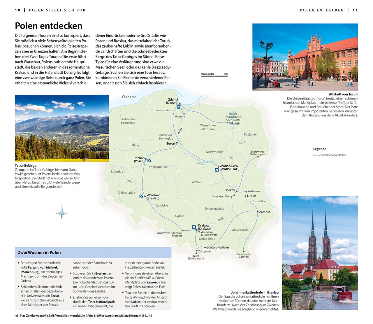 -Umfangreiche Porträts stellen die beeindruckende Natur und Kultur Polens vor von Architektur bis zu Literatur, Film & Musik. Im Kapitel "Zu Gast in Polen" gibt es umfangreiche Tipps zu Restaurants, Shopping, Nachtleben und Unterhaltung. Machen Sie z.B. einen Einkaufsbummel im großen Shopping-Center Zlote Tarasy oder genießen Sie eine Theateraufführung im Teatr Wielki, Warschau.