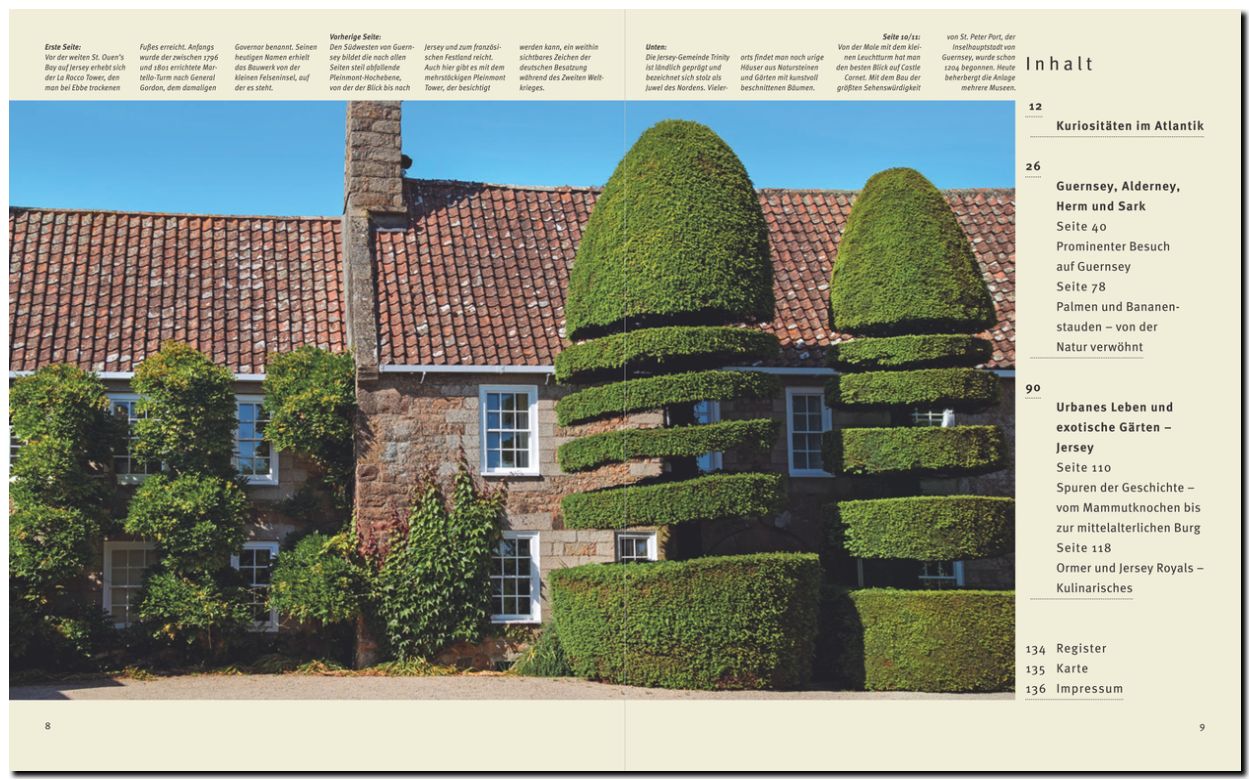 Naturparadiese voll wilder Schönheit, bizarre Felslandschaften und stille Buchten, goldene Sandstrände und steil abfallende Klippen, alte Herrenhäuser und idyllische Gärten machen die Kanalinseln oder Normannischen Inseln zu einem Traumziel im südwestlichen Teil des Ärmelkanals. Der Golfstrom begünstigt hier ein besonderes Klima, das eine einzigartige Flora von Palmen und Orchideen bis zu Ginster und Nadelgewächsen gedeihen lässt. Von der frühen Besiedlung zeugen noch manche Megalithanlagen und geheimnisvolle Menhire, malerische Fischerdörfer laden nicht nur auf den beiden Hauptinseln Guernsey und Jersey zum Verweilen ein.