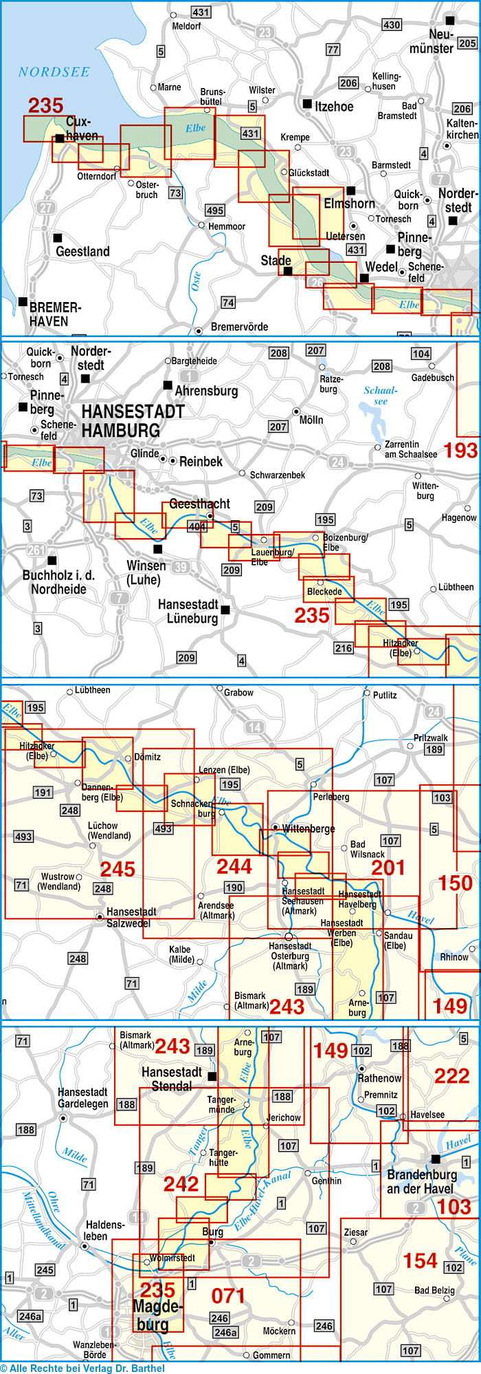 Entlang der Elbe über Tangermünde, Havelberg, Wittenberge und Geesthach bis nach Hamburg und Cuxhaven sowie Brunsbüttel