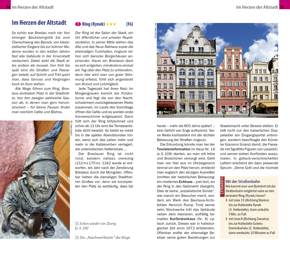 Dazu: kostenlose Web-App für Smartphone, Tablet und PC mit Stadtplan- und Satellitenansichten passend zum Text, Routenführung zu allen beschriebenen Sehenswürdigkeiten, Verlauf des Stadtspaziergangs, seitenbezogenen Updates nach Redaktionsschluss sowie einem Mini-Audiotrainer Polnisch.