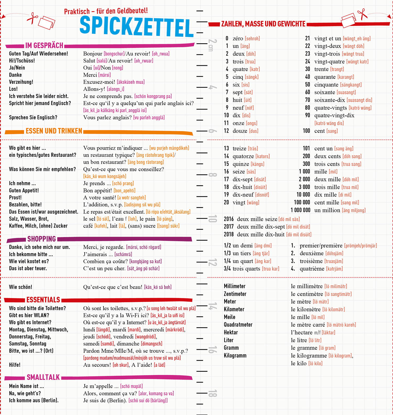 Spickzettel mit den wichtigsten Begriffen zum HeraustrennenWörterbuch mit den wichtigsten WörternZeigebilder zur schnellen VerständigungWie die Einheimischen: Extra Insider-Kästen und Slang-KapitelSchnelle Orientierung durch FarbleitsystemPraktisches Taschenformat