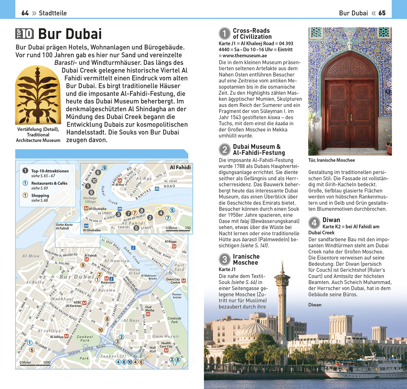Stadtteile: Von Deira & Bur Dubai über Jumeirah bis zum Zentrum von Abu Dhabi - die einzelnen Stadtteile werden mit anschaulichen Karten übersichtlich und ausführlich präsentiert.