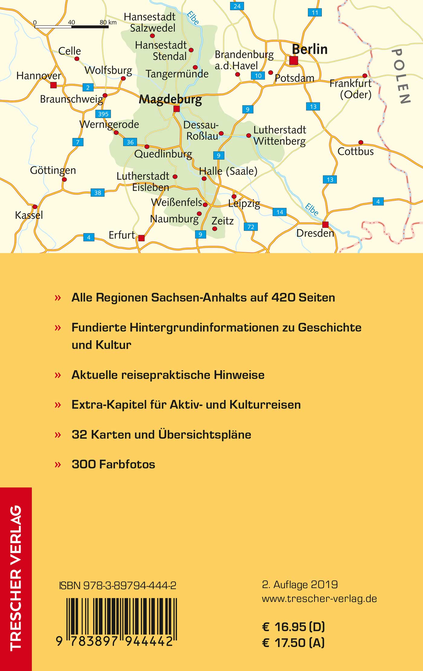 Der Reiseführer Sachsen-Anhalt aus dem Trescher Verlag ist ideal zur Reisevorbereitung und als Begleiter vor Ort. Er stellt nicht nur sämtliche Regionen sowie alle Sehenswürdigkeiten des Bundeslandes vor, sondern liefert auch eine Einführung zur Landeskunde und viele Hintergrundinformationen zu Geschichte, Kunst und Kultur. Vertiefende Essays machen zudem mit weniger bekannten Aspekten Sachsen-Anhalts vertraut. Zahlreiche Stadtpläne und Karten, auch zu touristischen Routen, erleichtern die Orientierung. Viele nützliche Reisetipps und die persönlichen Empfehlungen der Autoren helfen bei der Vorbereitung eines perfekten Urlaubs und unterwegs.