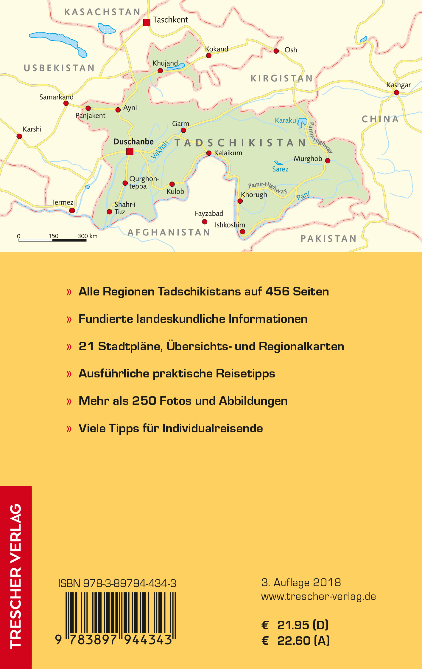 Dieser Reiseführer gibt zahlreiche Hinweise zur Vorbereitung einer unvergesslichen Reise. Detaillierte Tipps zu Unterkünften, Routen und Reisemöglichkeiten im Land ermöglichen einen besonderen und individuellen Aufenthalt, ausführliche Informationen zu Geschichte und Lebensweise geben einen tiefen Einblick in die tadschikische Kultur.... weitere Reiseführer zu Zentralasien finden Sie auf der Website des Trescher Verlags.