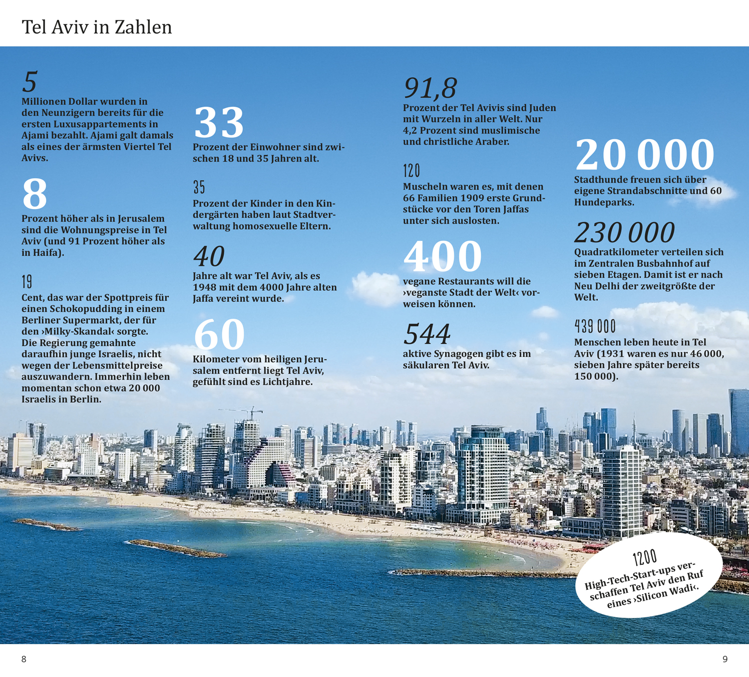 Alt und jung zugleich ist Tel Aviv, und das ist nicht das einzige Paradoxon. Tel Aviv gilt als veganste Stadt der Welt und als Mekka der LGBT-Szene, hier trifft Naher Osten auf nackte Haut, Laissez-faire auf High-Tech-Boom, und das umgeben von islamisch geprägten Nachbarn und mit einer wachsenden ultraorthodoxen Bevölkerung im Land.