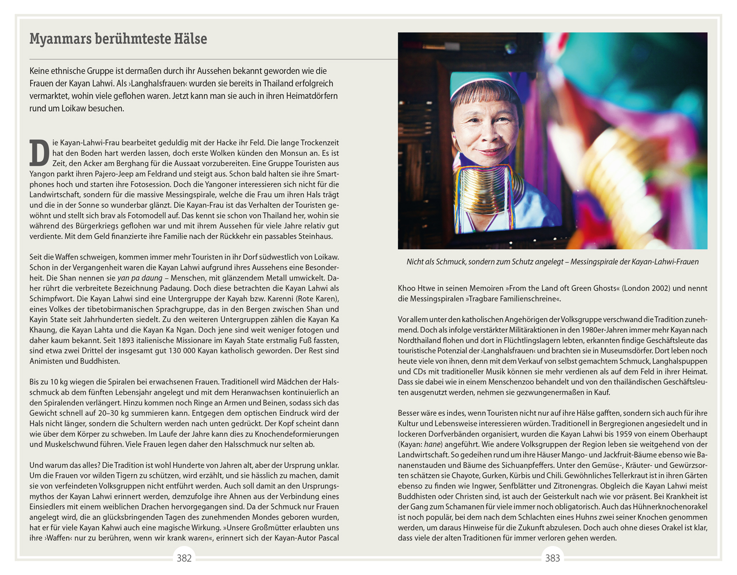 Myanmar ist ein Traumziel für Reisende mit Entdeckergeist. Karge Savannen und Fünftausendergipfel locken Wanderer und Naturfreunde. Die Städte dazwischen begeistern Kulturinteressierte mit buddhistischen Pagoden und kolonialer Pracht. Das DuMont Reise-Handbuch begleitet Sie in alle Regionen des faszinierenden Landes, vom quirligen Treiben in Yangon bis zum Ayeyarwady-Delta, von der tropischen Inselwelt der Andamanensee und durch die beeindruckenden Landschaften des Shan State bis zu den Bergvölkern im Himalaya.