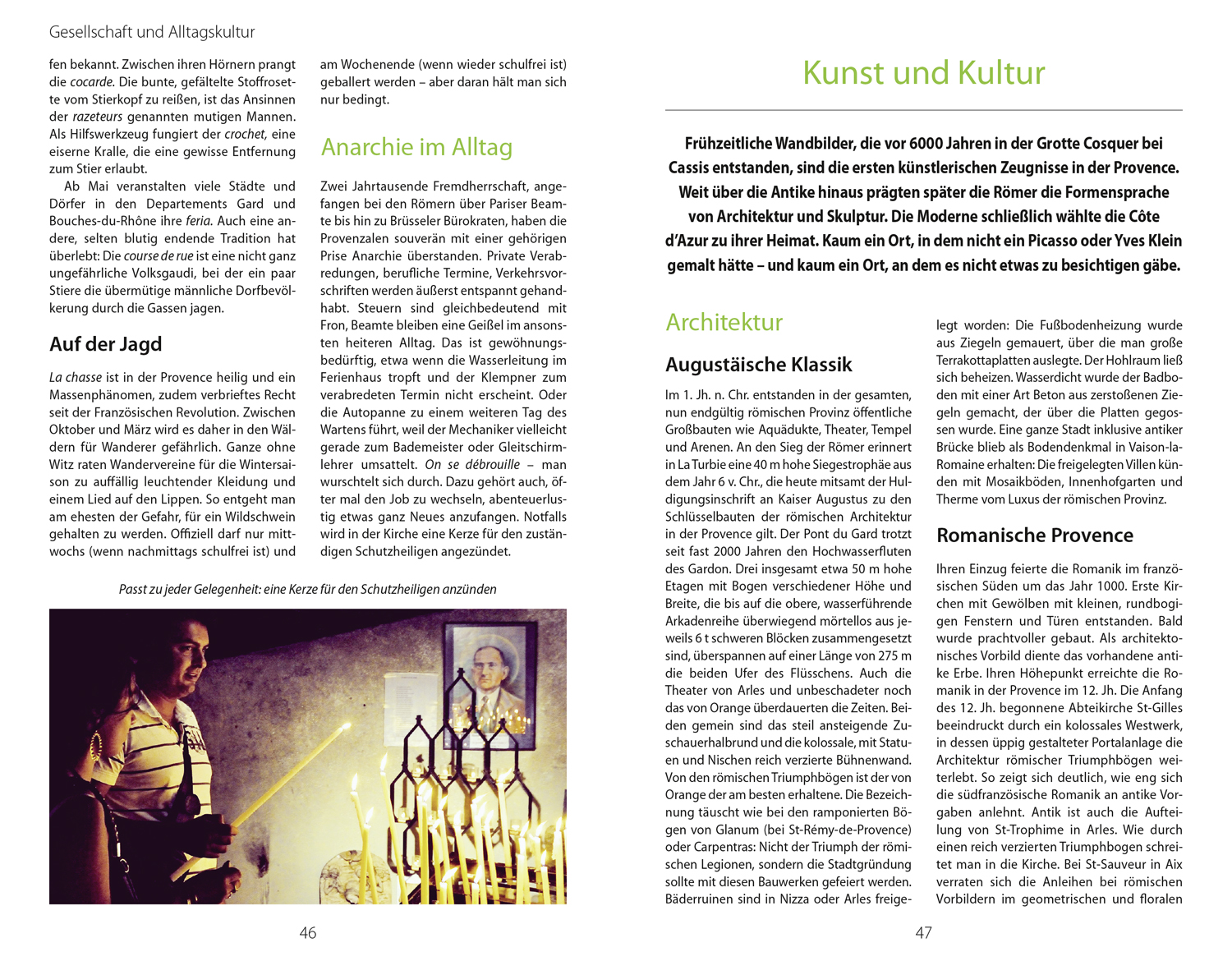 Ort für Ort hat Klaus Simon ausgesuchte Unterkünfte, Restaurants und Einkaufsadressen zusammengestellt, die alle in den Cityplänen verzeichnet sind. Wanderungen erschließen die schönsten Landschaften, etwa die Alpilles südlich von Avignon oder die Calanques zwischen Marseille und Toulon. Im Landeskundeteil sowie in den eingestreuten Themenseiten erfährt man Wissenswertes über die Provence und die Côte d'Azur, über Geschichte, Gegenwart und Alltagskultur der Menschen.