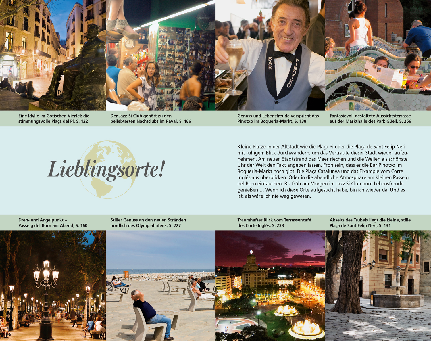 Viertel für Viertel hilft der Reiseführer, in das Innenleben der Stadt einzutauchen und dabei weder die weltberühmten Sehenswürdigkeiten von den Rambles bis zur Sagrada Família zu versäumen noch angesagte Tapasbars, schöne Märkte sowie brandneue Highlights wie etwa die ganz aktuell als Gaudí-Museum neu eröffnete Casa Vicens, das erste als Wohnhaus konzipierte Gebäude des Architekten in Barcelona.