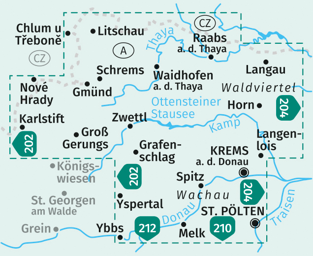 KOMPASS Wanderkarte Waldviertel, Kamptal, Wachau