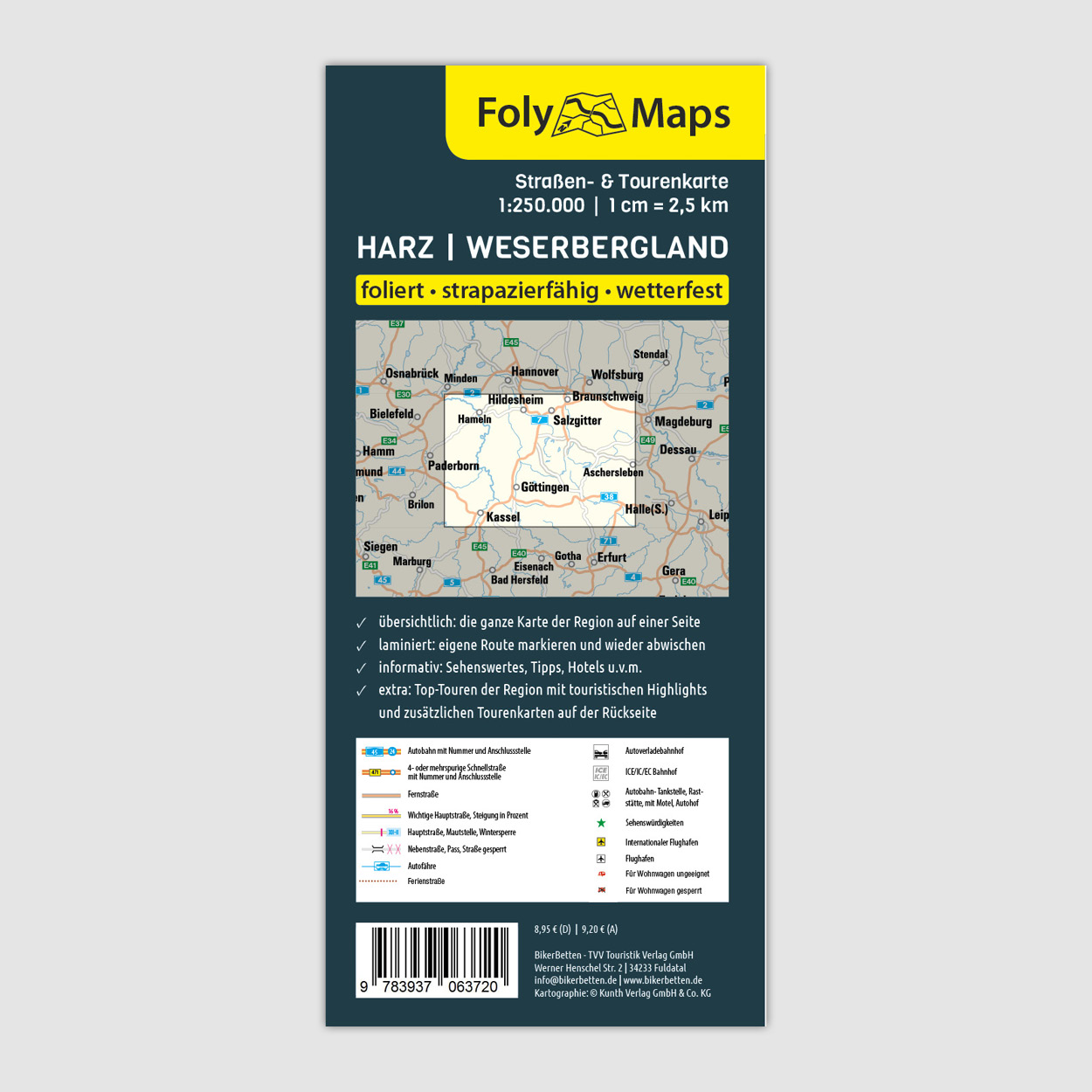 | Schlagworte | Deutschland • foliert • Harz • Laminiert • Motorrad • Motorradkarte • Motorradkarten • Motorradreiseführer • Motorrad Reiseführer • Roadtrip • Road Trip • Solling • Straßenkarte • Touren • Weser • Weserbergland |