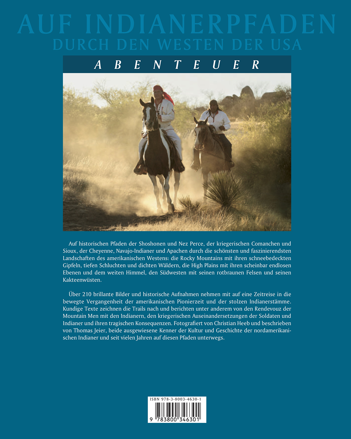 | Schlagworte | Amerika • Apachen • Apache Trail • Arizona • Bear Butte • Bildband • bozeman trail • Cherokee • Cheyenne • Chickasaw • Chief Joseph Trail • Chowtaw • Comanchen • Comanche War Trail • Crazy Horse • Frank Fooscrow • Großformatbildband • Indian Country • Indianer • Indianer Territory • Jim Yellowhawk • Kiowa • Lewis & Clark Historic Trail • Little Bighorn • Montana • Navajo • Navajo Long Walk • Nordamerika • Oklahoma • Oregon Trail • Pine Ridge Reservation • Powwows • Reisebildband • Rocky Mountains • Siox • Sonja Holy Eagle • South Dakota • Southern Plains • USA • Washita River • Westen der USA |