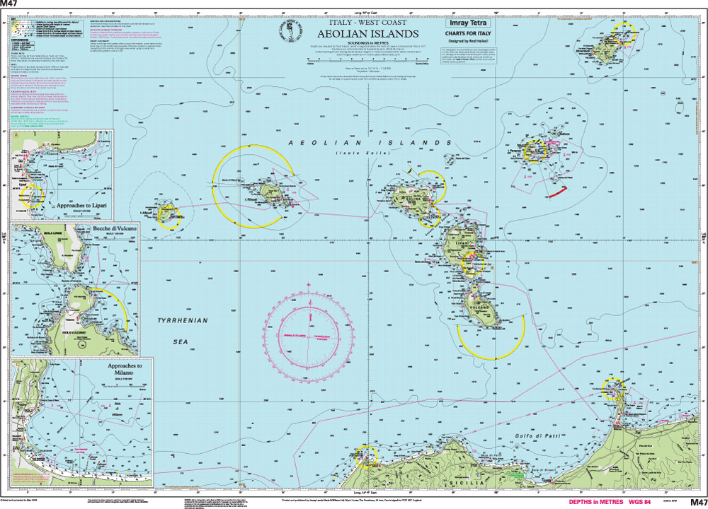 On this 2018 edition a new plan showing the approaches to Milazzo is included. The chart specification has been improved to show coloured light flashes. There has been general updating throughout.