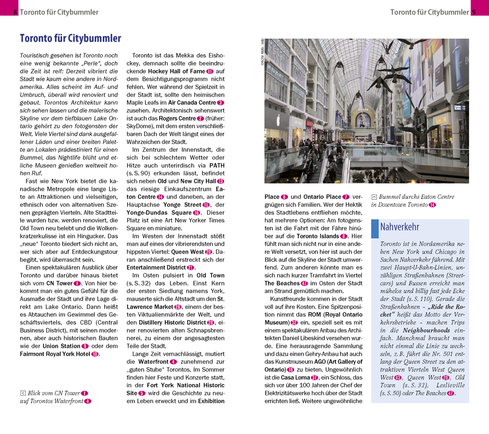 Dieser aktuelle Stadtführer ist der ideale Begleiter, um alle Seiten der kanadischen Metropole selbstständig zu entdecken:- Die wichtigsten Sehenswürdigkeiten und Museen der Stadt sowie weniger bekannte Attraktionen und Viertel ausführlich vorgestellt und bewertet- Faszinierende Architektur zwischen klassizistischen Prachtbauten und modernen Wolkenkratzern- Abwechslungsreicher Stadtspaziergang- Erlebnisvorschläge für einen Kurztrip- Ausflüge zu den Niagara Falls, ins Mennonite Country und nach Straford- Shoppingtipps von typischen Souvenirs bis zu den besten Outlet Malls- Die besten Lokale der Stadt und allerlei Wissenswertes über die kanadische Küche- Tipps für die Abend- und Nachtgestaltung: vom angesagten Pub bis zu den besten Livemusik-Locations- Die Kanadier und der Sport: Eishockey, Lacrosse und Canadian Football- Toronto zum Erholen und Entspannen: die Beaches, Toronto Islands, Queen's Park- Ausgewählte Unterkünfte von preiswert bis ausgefallen- Alle praktischen Infos zu Anreise, Preisen, Stadtverkehr, Touren, Events, Hilfe im Notfall ...- Hintergrundartikel mit Tiefgang: Geschichte, Mentalität der Bewohner, Leben in der Stadt ...- Kleine Sprachhilfe Englisch mit den wichtigsten Vokabeln für den Reisealltag- Faltplan zum HerausnehmenDazu: kostenlose Web-App für Smartphone, Tablet und PC mit Stadtplan- und Satellitenansichten passend zum Text, Routenführung zu allen beschriebenen Sehenswürdigkeiten, Verlauf des Stadtspaziergangs, seitenbezogenen Updates nach Redaktionsschluss sowie einem Mini-Audiotrainer Canadian Slang.+++ CityTrip - die aktuellen Stadtführer von Reise Know-How, mit über 130 Städtezielen die weltweit umfangreichste Kollektion. Fundiert, übersichtlich, praktisch.
