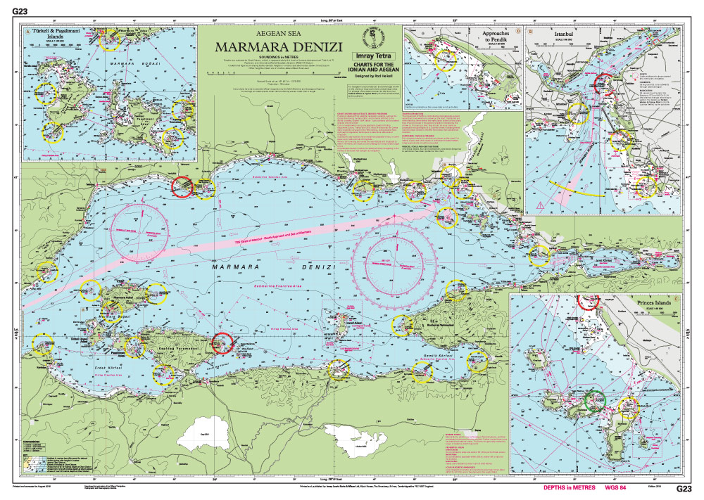On this 2018 edition the chart specification has been improved to show coloured light flashes.