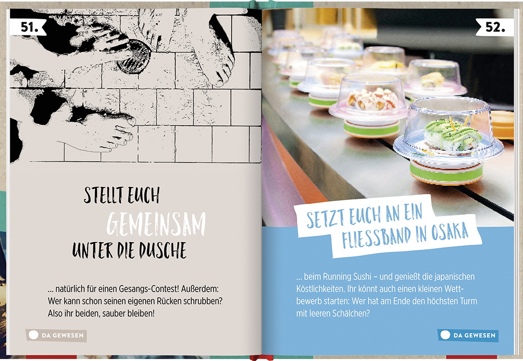 Ob als Ideengeber für Sie selbst oder als Geschenk zur Hochzeit, zum Geburtstag eines befreundeten Pärchens oder zum Jahrestag, in diesem Buch stecken Abenteuer! So geht es nicht nur zum Ort des ersten Dates, nach Venedig oder ganz simpel auf die Arbeit des Partners, sondern ganz bestimmt auch in eine gemeinsame Zukunft.