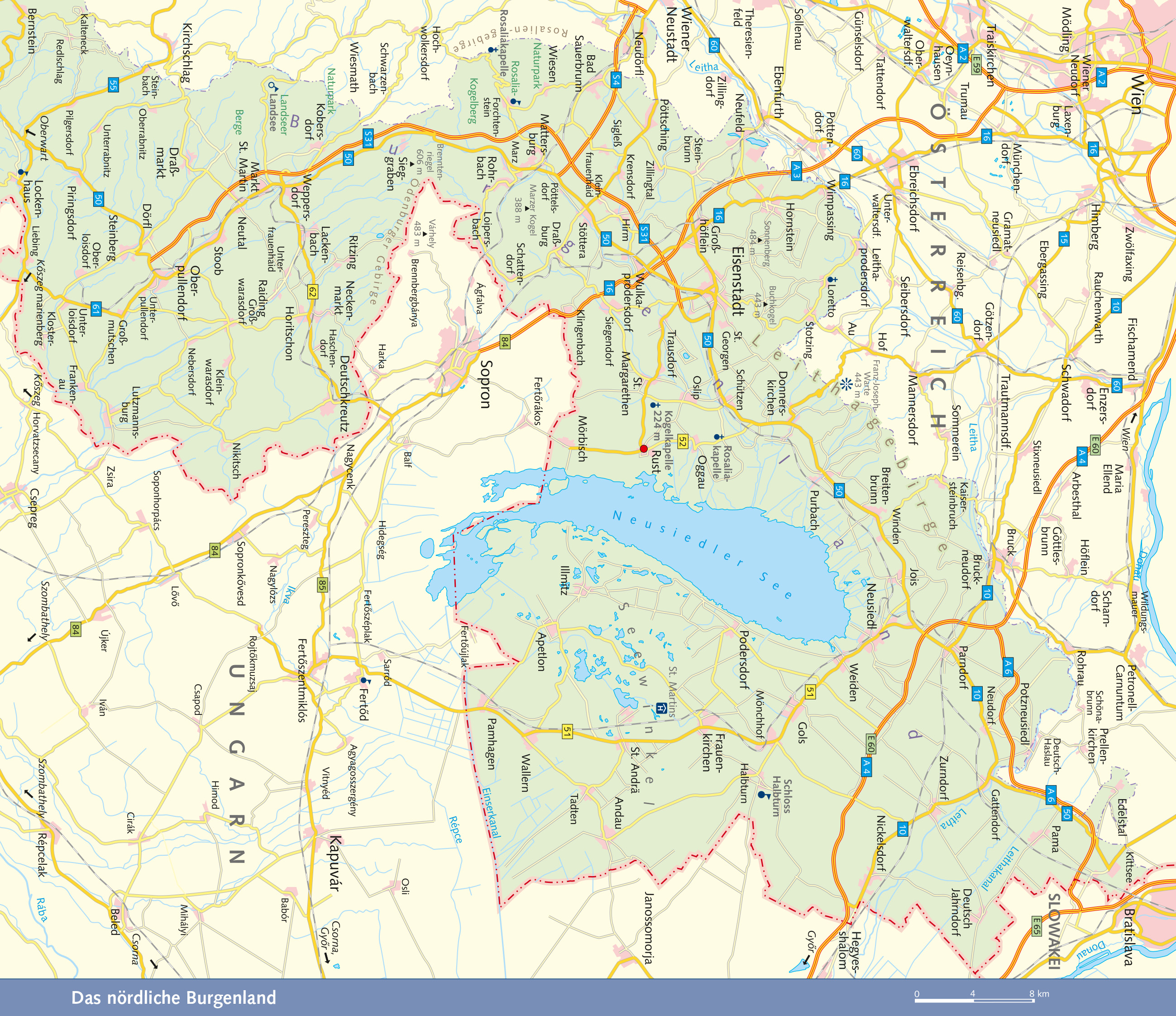 VORWORT Österreich ist das beliebteste Urlaubsland der Deutschen und zählt überhaupt zu den meistbesuchten Urlaubsländern Europas. Die Gäste reisen nach Wien, in die Wachau, zu den Seen des Salzkammerguts oder Kärntens und im Winter zum Skifahren nach Tirol und in die Region um Salzburg. An vielen anderen Regionen Österreichs aber gehen die Besucherströme weitgehend vorbei. Dazu zählt auch das Burgenland, obwohl hier Kunstschätze und Naturschönheiten in großer Zahl eine Entdeckung lohnen. Das Burgenland nimmt innerhalb Österreichs eine Sonderstellung ein; Es gehörte, im Unterschied zu allen anderen österreichischen Bundesländern, rund tausend Jahre lang zu einem anderen Staat: zu Ungarn. Diese Zugehörigkeit machte das Land zum umkämpften Grenzgebiet, an seinem Westsaum verlief die Grenze zwischen dem Heiligen Römischen Reich deutscher Nation und dem Territorium der ungarischen Könige. Kein Wunder, dass in diesem Gebiet neben den Ungarn und Österreichern ein großer Anteil verschiedener ethnischer Minderheiten ihre Heimat finden konnte: Kroaten, Walachen, Slowenen, Roma. Erst seit 1921 gibt es dieses Burgenland als verwaltungstechnische Einheit. Es wurde von den Siegermächten des Ersten Weltkrieges von Ungarn in einer willkürlichen Grenzziehung abgeschnitten und an Österreich angegliedert. Schon die Wahl des Namens ist eine Kuriosität. Er bezieht sich keineswegs auf Burgen im eigentlichen Sinn, sondern möchte ausdrücken, dass das Land ein Konglomerat von Teilen vier ehemaliger Komitate ist, deren Verwaltungsstädte sämtlich auf -burg enden: Preßburg, Ödenburg, Eisenburg und Wieselburg. Doch keine dieser Komitatsstädte befand und befindet sich auf dem Territorium des neuen Landes! Diese Angliederung nahm nicht auf Geschichte, nicht auf vorhandene politische Strukturen oder das Leben der Bewohner Rücksicht. Daraus resultiert eine weitere Besonderheit, die ungewöhnliche äußere Form des Landes. Das Burgenland war auch das einzige Bundesland Österreichs, das in der NS-Zeit verschwand, da es zwischen dem Gau Niederdonau und der Steiermark aufgeteilt wurde. Und nach 1945, gerade neu entstanden, wurde das junge Gebilde erneut Grenzland, nun für 45 Jahre: Es lag am Eisernen Vorhang. Der aber wurde 1989 mit dem Durchschneiden der ungarischen Grenzanlagen durch österreichische und ungarische Minister hier geöffnet und letztlich zum Verschwinden gebracht. Das historische Grenzland Burgenland ist auch Grenzland in naturkundlicher Hinsicht: Es ist der Übergangsbereich der Alpen in die weite pannonische Ebene, die Grenze zwischen atlantischem Feucht- und pannonischem Trockenklima. Gerade das führte zu ganz eigenen geographischen Besonderheiten, die sonst nur in den Steppen Mittelasiens zu finden sind. Die meisten Touristen setzen ›Burgenland‹ mit dem Gebiet um den Neusiedler See gleich und ignorieren seine südliche Hälfte. Um das schöne Land mit seinen vielen Schätzen in seiner Gänze besser bekannt werden zu lassen und die Neugierde darauf zu wecken, entstand dieser Reiseführer. >>> Weitere Reiseführer zu Österreich: www.trescher-verlag.de