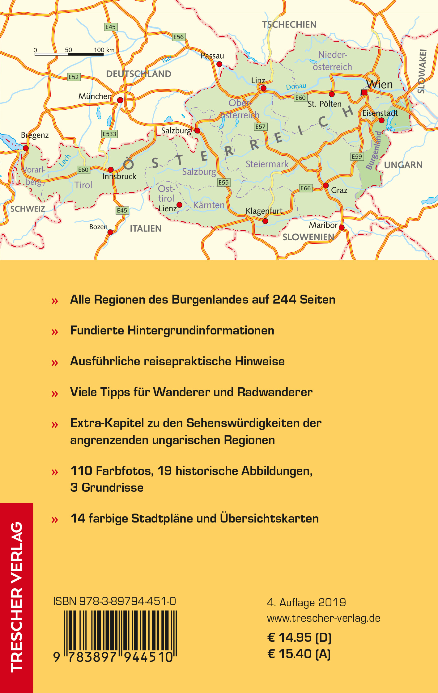 VORWORTÖsterreich ist das beliebteste Urlaubsland der Deutschen und zählt überhaupt zu den meistbesuchten Urlaubsländern Europas. Die Gäste reisen nach Wien, in die Wachau, zu den Seen des Salzkammerguts oder Kärntens und im Winter zum Skifahren nach Tirol und in die Region um Salzburg. An vielen anderen Regionen Österreichs aber gehen die Besucherströme weitgehend vorbei. Dazu zählt auch das Burgenland, obwohl hier Kunstschätze und Naturschönheiten in großer Zahl eine Entdeckung lohnen.Das Burgenland nimmt innerhalb Österreichs eine Sonderstellung ein; Es gehörte, im Unterschied zu allen anderen österreichischen Bundesländern, rund tausend Jahre lang zu einem anderen Staat: zu Ungarn. Diese Zugehörigkeit machte das Land zum umkämpften Grenzgebiet, an seinem Westsaum verlief die Grenze zwischen dem Heiligen Römischen Reich deutscher Nation und dem Territorium der ungarischen Könige. Kein Wunder, dass in diesem Gebiet neben den Ungarn und Österreichern ein großer Anteil verschiedener ethnischer Minderheiten ihre Heimat finden konnte: Kroaten, Walachen, Slowenen, Roma.Erst seit 1921 gibt es dieses Burgenland als verwaltungstechnische Einheit. Es wurde von den Siegermächten des Ersten Weltkrieges von Ungarn in einer willkürlichen Grenzziehung abgeschnitten und an Österreich angegliedert. Schon die Wahl des Namens ist eine Kuriosität. Er bezieht sich keineswegs auf Burgen im eigentlichen Sinn, sondern möchte ausdrücken, dass das Land ein Konglomerat von Teilen vier ehemaliger Komitate ist, deren Verwaltungsstädte sämtlich auf -burg enden: Preßburg, Ödenburg, Eisenburg und Wieselburg. Doch keine dieser Komitatsstädte befand und befindet sich auf dem Territorium des neuen Landes! Diese Angliederung nahm nicht auf Geschichte, nicht auf vorhandene politische Strukturen oder das Leben der Bewohner Rücksicht. Daraus resultiert eine weitere Besonderheit, die ungewöhnliche äußere Form des Landes.Das Burgenland war auch das einzige Bundesland Österreichs, das in der NS-Zeit verschwand, da es zwischen dem Gau Niederdonau und der Steiermark aufgeteilt wurde. Und nach 1945, gerade neu entstanden, wurde das junge Gebilde erneut Grenzland, nun für 45 Jahre: Es lag am Eisernen Vorhang. Der aber wurde 1989 mit dem Durchschneiden der ungarischen Grenzanlagen durch österreichische und ungarische Minister hier geöffnet und letztlich zum Verschwinden gebracht. Das historische Grenzland Burgenland ist auch Grenzland in naturkundlicher Hinsicht: Es ist der Übergangsbereich der Alpen in die weite pannonische Ebene, die Grenze zwischen atlantischem Feucht- und pannonischem Trockenklima. Gerade das führte zu ganz eigenen geographischen Besonderheiten, die sonst nur in den Steppen Mittelasiens zu finden sind.Die meisten Touristen setzen 'Burgenland' mit dem Gebiet um den Neusiedler See gleich und ignorieren seine südliche Hälfte. Um das schöne Land mit seinen vielen Schätzen in seiner Gänze besser bekannt werden zu lassen und die Neugierde darauf zu wecken, entstand dieser Reiseführer.>>> Weitere Reiseführer zu Österreich: www.trescher-verlag.de