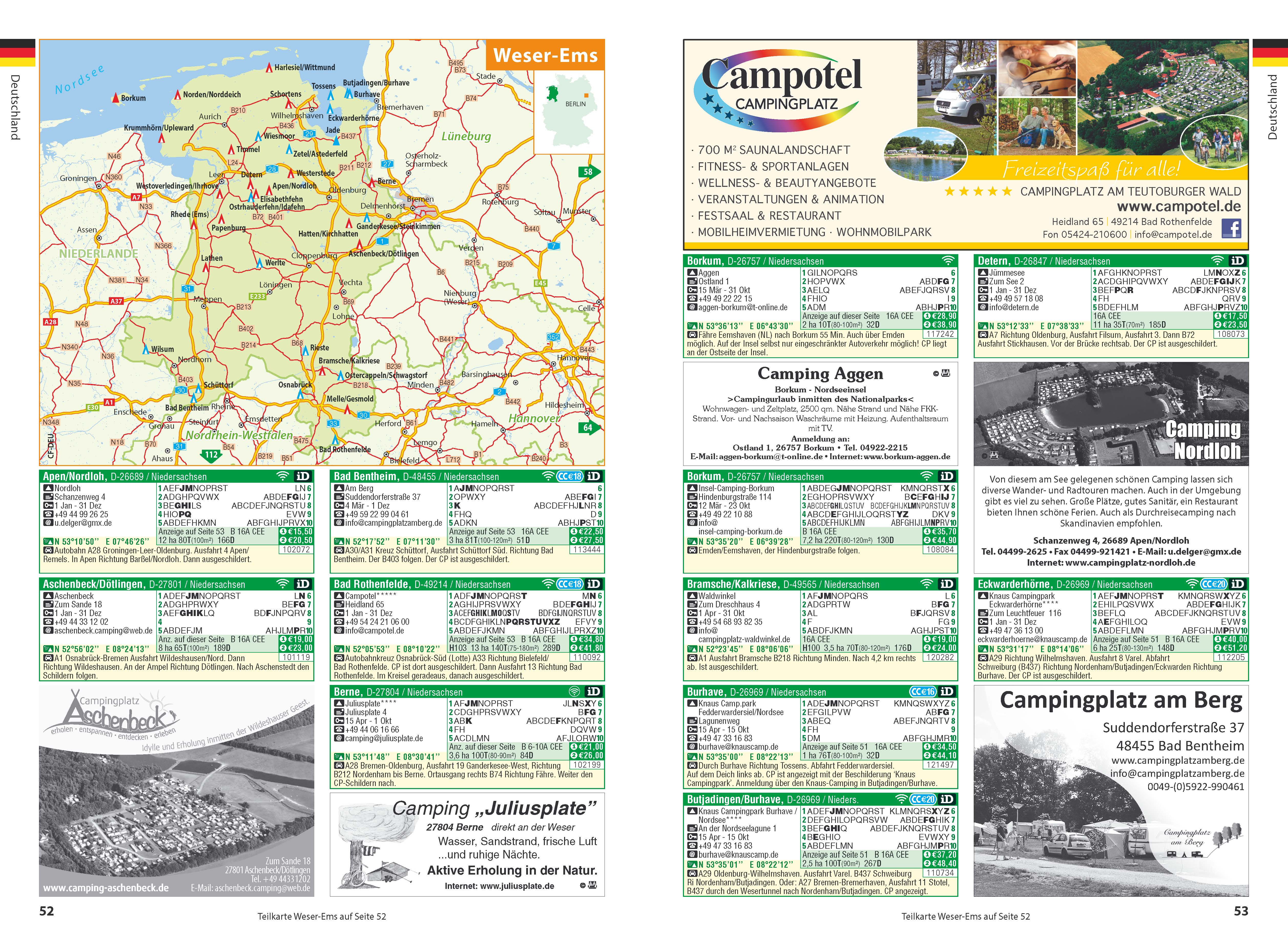 Der ACSI-Campingführer Deutschland stellt alle wichtigen Tourist-Campingplätze im Bundesgebiet vor. Außerdem werden Campingplätze in sechs Nachbarländern präsentiert: Beginnend bei den Niederlanden, Belgien und Luxemburg, über Dänemark bis zu Österreich und Schweiz. Das Ganze ist gründlich und sorgfältig erarbeitet: Rund 300 Inspekteure bereisen für den ACSI Europa und besuchen Jahr für Jahr jeden Platz, der in diesen Band aufgenommen wird. Eine CampingCard ACSI für attraktive Rabatte in der Nebensaison komplettiert das preislich besonders attraktive Angebot.