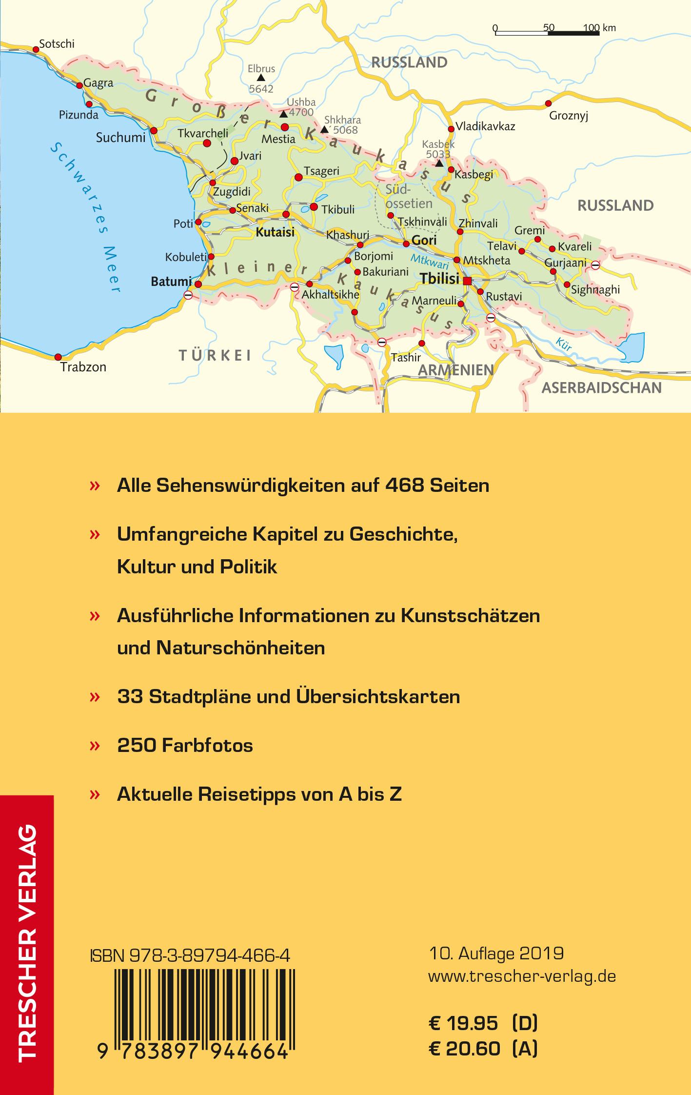 Der Reiseführer GEORGIEN aus dem Trescher Verlag bietet im einführenden Teil zur Landeskunde reichlich Hintergrundinformationen zu Kunst, Kultur, Politik und Gesellschaft. Der Reiseteil deckt mit der Hauptstadt Tiflis (Tblissi), Kachetien, Kartli, Kolchis, Schwarzem Meer, Swanetien und weiteren Reisezielen alle Regionen des Landes ab. Zahlreiche Reisetipps helfen bei der Reisevorbereitung und liefern unterwegs hilfreiche praktische Informationen. Der mit 250 Fotos schön aufgemachte Reiseführer enthält 33 Karten zur Orientierung und bietet alle für einen Urlaub im Land des Goldenen Fließes nötigen Informationen.