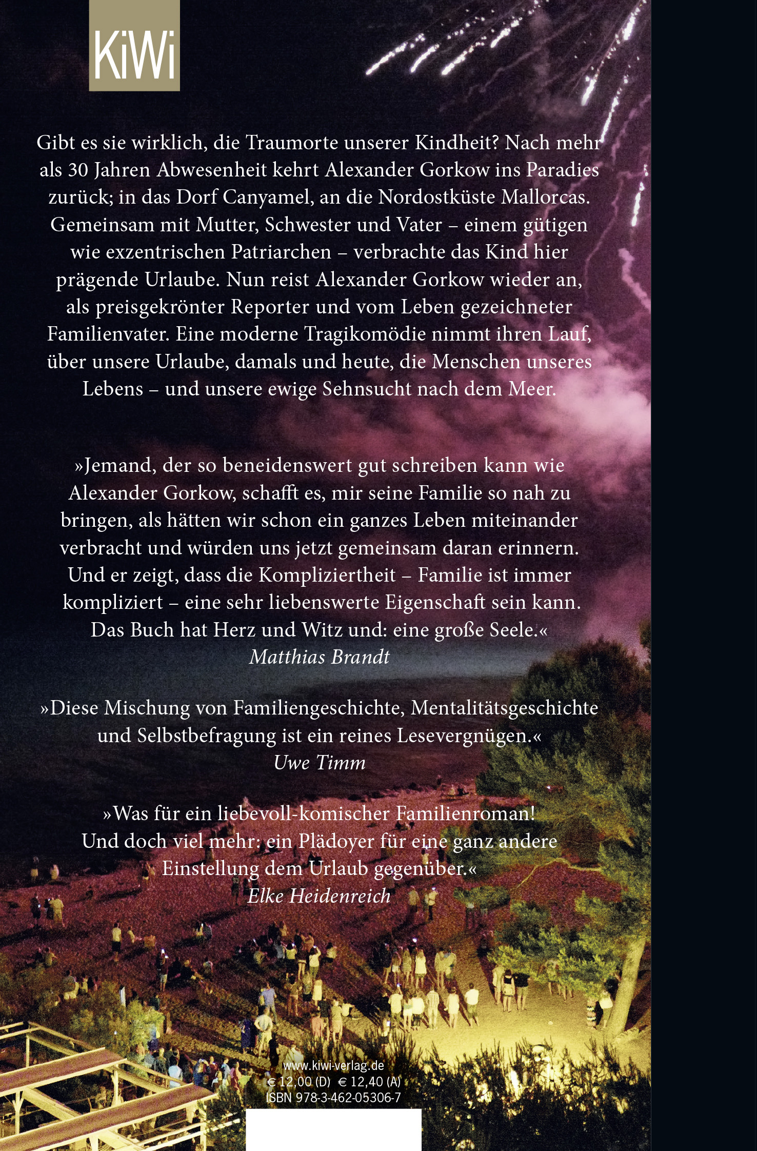 Gibt es sie wirklich, die Traumorte unserer Kindheit? Nach mehr als 30 Jahren Abwesenheit kehrt Alexander Gorkow ins Paradies zurück; in das Dorf Canyamel, an die Nordostküste Mallorcas. Gemeinsam mit Mutter, Schwester und Vater - einem gütigen wie exzentrischen Patriarchen - verbrachte das Kind hier prägende Urlaube. Nun reist Alexander Gorkow wieder an, als preisgekrönter Reporter und vom Leben gezeichneter Familienvater. Eine moderne Tragikomödie nimmt ihren Lauf, über unsere Urlaube, damals und heute, die Menschen unseres Lebens - und unsere ewige Sehnsucht nach dem Meer.