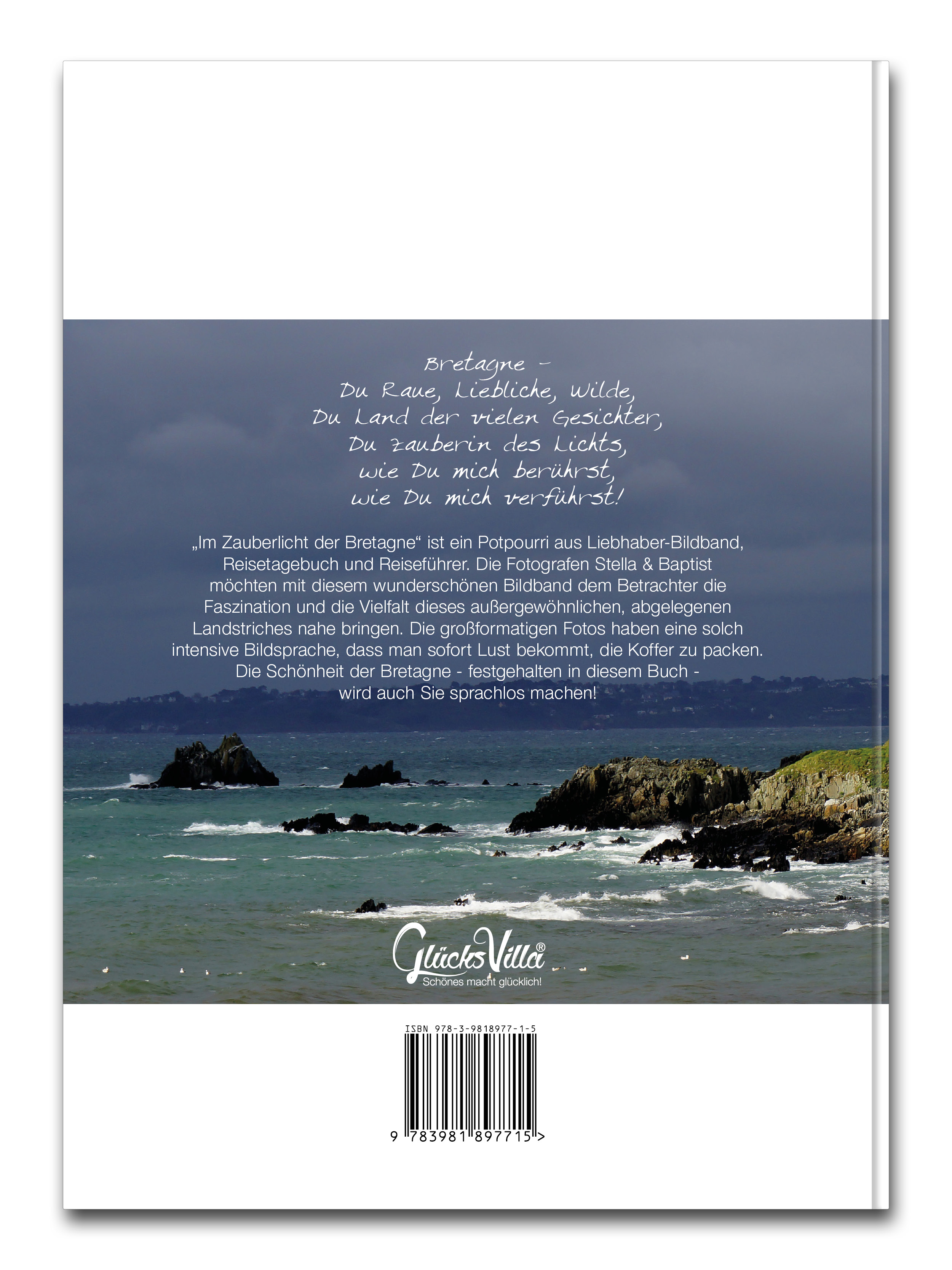 „Im Zauberlicht der Bretagne“ ist ein Potpourri (Mix) aus Liebhaber-Bildband, Reisetagebuch und Reiseführer. Begeben Sie sich auf eine Küstenrundreise, bestehend aus 6 Touren, mit Übersichtsplänen und Ortsbeschreibungen.