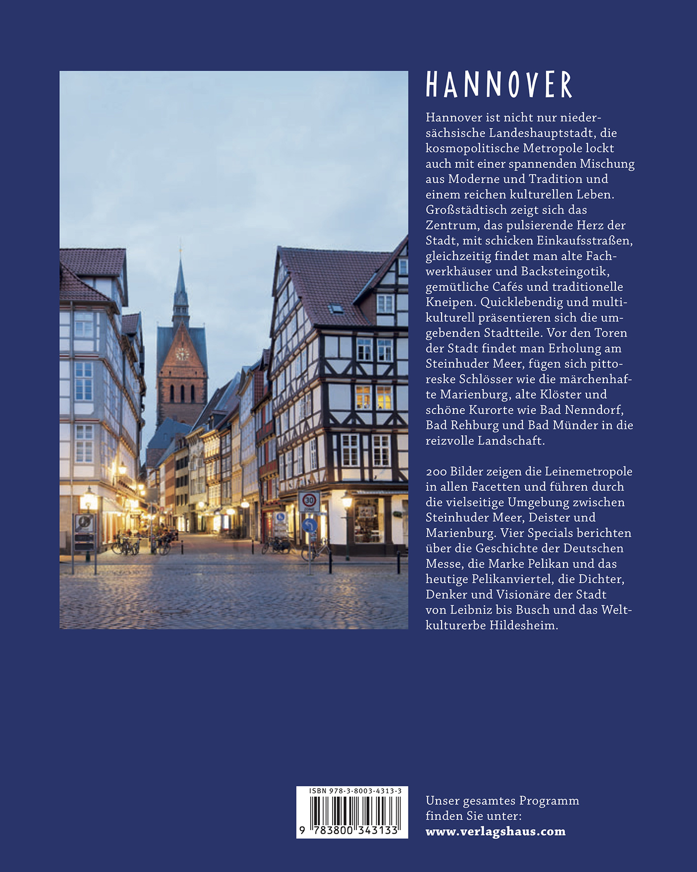 Rund 200 Bilder zeigen die Leinemetropole in allen Facetten und führen durch die vielseitige und reizvolle Umgebung zwischen Steinhuder Meer, Deister und Marienburg. Specials beschäftigen sich mit den Besonderheiten der Stadt, wie der Pelikan-Fabrik, der modernen Architektur oder der Deutschen Messe.