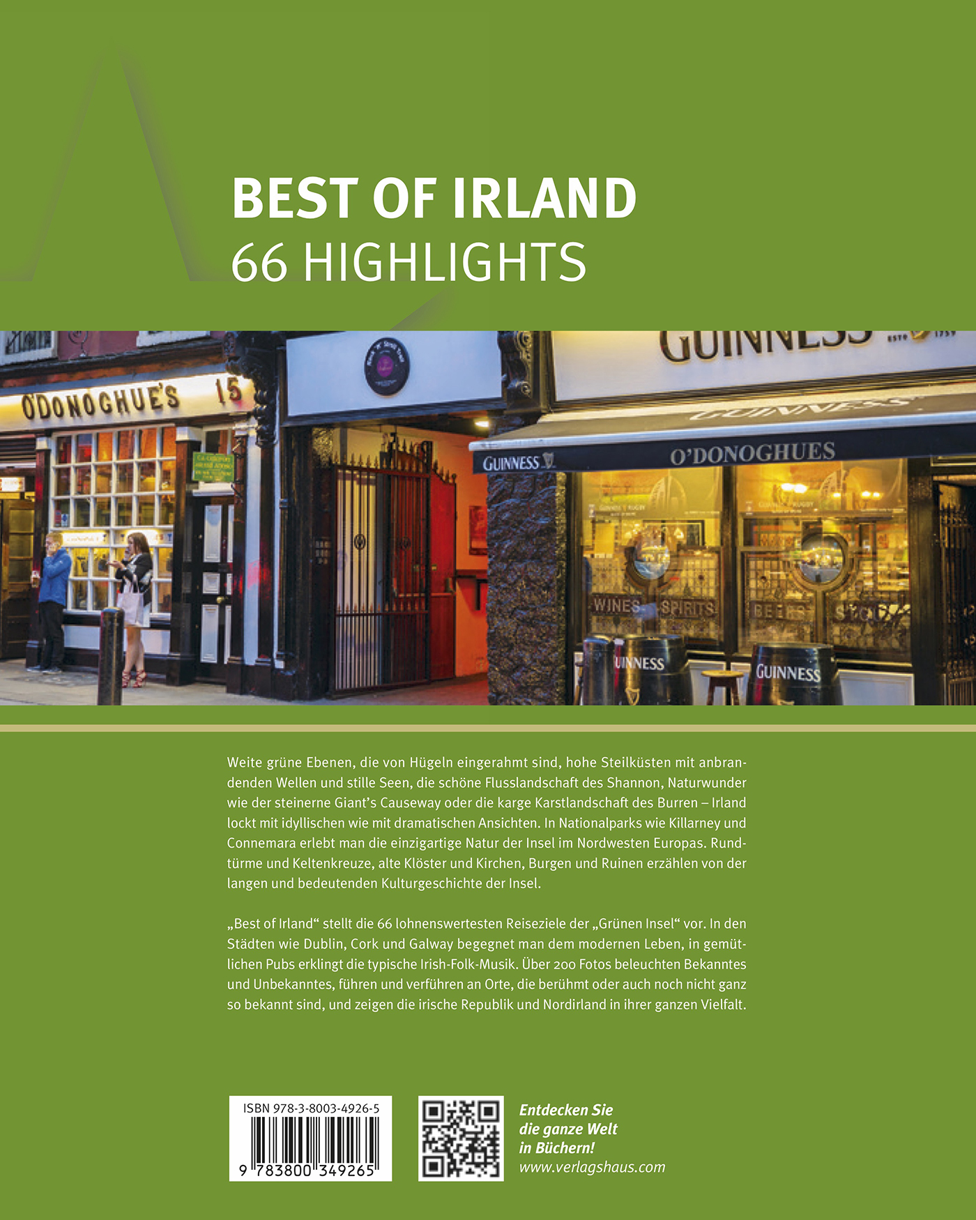 Weite grüne Ebenen von Hügeln umschlossen, hohe Steilküsten mit anbrandenden Wellen und stille Seen, die schöne Flusslandschaft des Shannon, Steindenkmale wie der Giant's Causeway oder die karge Karstlandschaft des Burren - Irland lockt mit idyllischen wie mit dramatischen Ansichten. In Nationalparks wie Killarney und Connemara erlebt man die einzigartige Natur der Insel im Nordwesten Europas.Rundtürme und Keltenkreuze, alte Klöster und Kirchen, Burgen und Ruinen erzählen von der langen und bedeutenden Geschichte des Landes. In den Städten wie Dublin, Cork und Galway begegnet man dem modernen Leben und kehrt ein in gemütliche Pubs, in denen auch die typische Irish-Folk-Musik erklingt. Feierlichkeiten wie der Bloomsday oder St.-Patricks-Day, Pferdemärkte oder beispielsweise das Matchmaking-Festival in Lisdoonvarna bringen einem das Wesen der Iren näher. "Best of Irland" stellt die 66 lohnenswertesten Reiseziele Irlands vor. Rund 200 Fotos beleuchten Bekanntes und Unbekanntes, führen und verführen an Orte, die berühmt oder auch noch nicht ganz so bekannt sind, zeigen die Iren beim Feiern, blicken hinter die Fassaden von zum Beispiel Klöstern und Bibliotheken und zeigen Irland in seiner ganzen Vielfalt.BEST OF ... ist eine Bildbandreihe professionell fotografiert von renommierten Reisefotografen -- - - Bis zu 200 Bilder auf 140 Seiten - - - Sehr gutes Preis-Leistungs-Verhältnis - - - Die 66 wichtigsten Sehenswürdigkeiten einer Destination vorgestellt in Wort und Bild - - - Kenntnisreiche Texte - - - Ausführliche Bildunterschriften - - - Farbiger Lageplan zu jedem Highlight - - - Detailliertes Register und Übersichtskarte - - - GPS-Daten zum leichteren Auffinden der Highlights