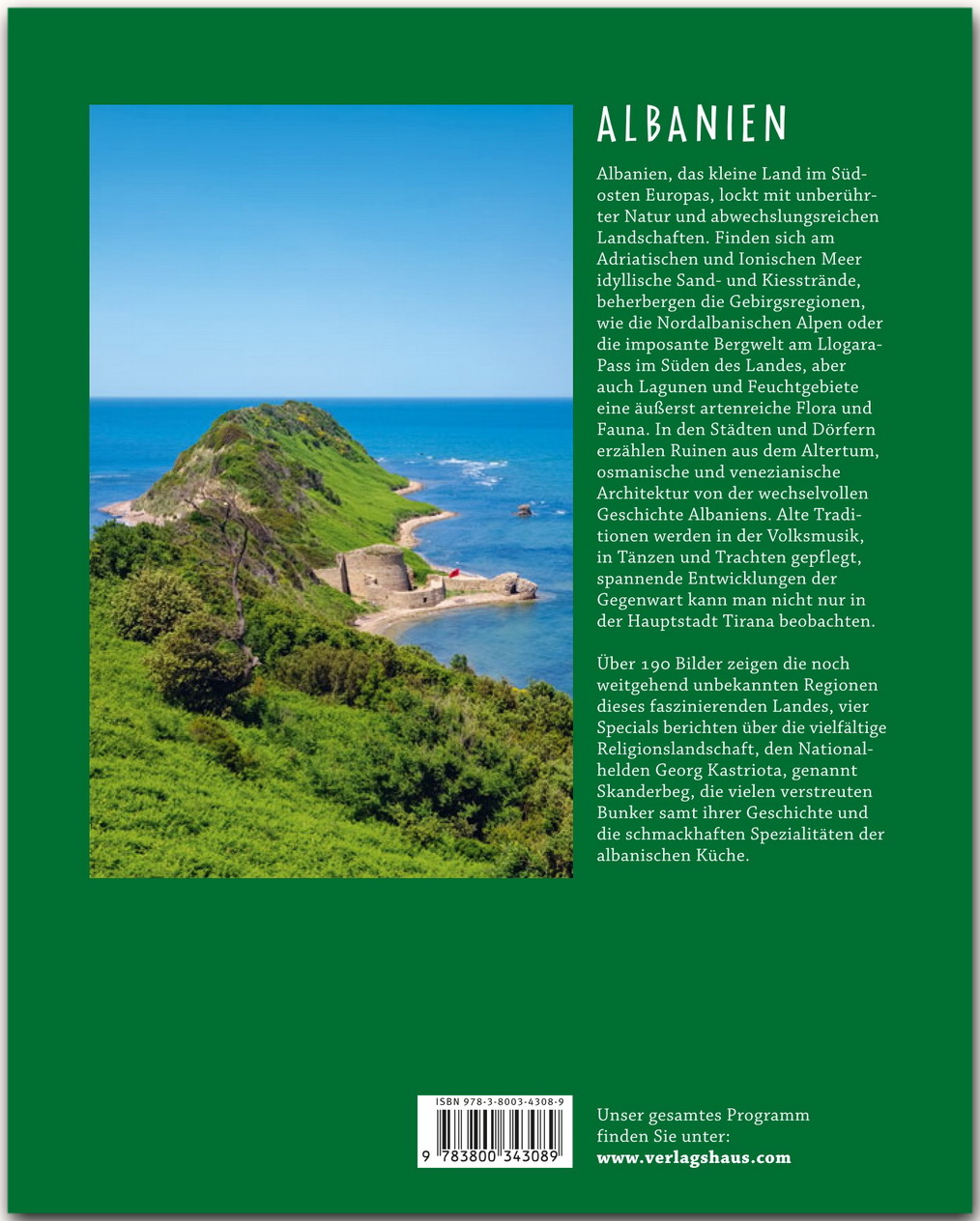 Circa 200 Bilder zeigen die noch weitgehend unbekannten Regionen dieses faszinierenden Landes, vier Specials berichten über die Religionslandschaft, den Nationalhelden Georg Kastriota, genannt Skanderbeg, die vielen verstreuten Bunker samt ihrer Geschichte und die schmackhaften Spezialitäten der albanischen Küche.
