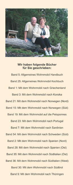 Wir beschreiben 144 freie Plätze zum bequemen Übernachten mit genauer Anfahrtsbeschreibung, Ausstattung und präzisen GPS-Koordinaten, differenziert nach Stell-, Bade-, Picknick- und Wanderparkplätzen - aber natürlich auch über 60 Campingplätze, 80 Brunnen sowie die Ver- und Entsorgungsstationen.