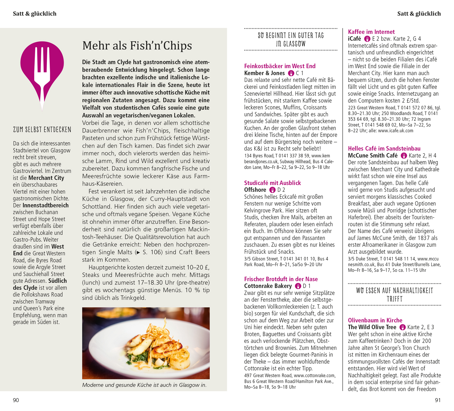 Das Beste zu Beginn. Das ist Glasgow. Glasgow in Zahlen. Was ist wo? Augenblicke. Ihr Glasgow-Kompass. 15 Direktkapitel. Glasgows Museumslandschaft. Kunst an den Mauern. Eine Jugendstilreise. Pause - Einfach mal abschalten. In fremden Betten. Satt & Glücklich. Stöbern & entdecken. Wenn die Nacht beginnt. Hin & weg. O-Ton Glasgow. Kennen Sie die?