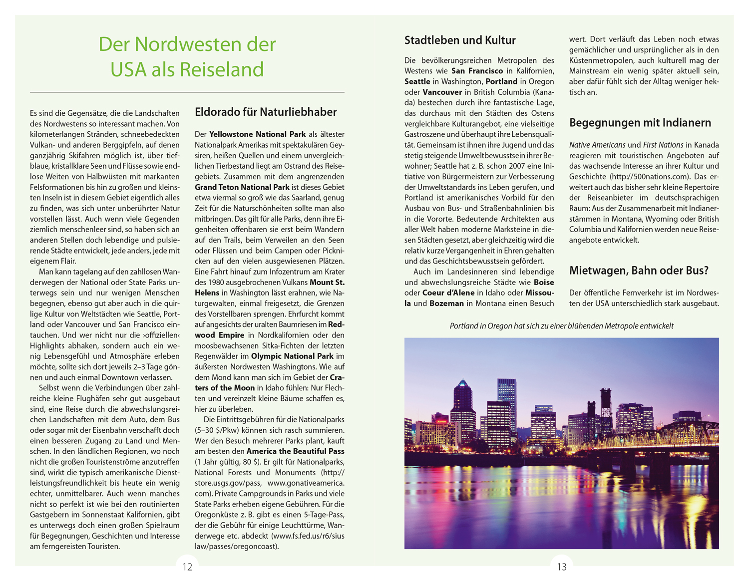 Viel Wissenswertes über den Nordwesten der USA, über seine Geschichte und Gegenwart oder den Alltag der Menschen lässt sich in der einführenden Landeskunde wie in den eingestreuten Themenseiten nachlesen.