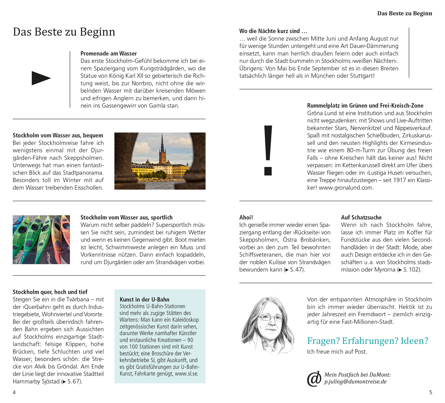 Seit Petra Juling auf der Durchreise in den hohen Norden zum ersten Mal in Stockholm Station machte, fasziniert sie das Miteinander von Kultur und Natur in der schwedischen Hauptstadt, das auch überzeugte Stadtflüchtlinge in den Bann zieht. Sie liebt die Gelassenheit und Offenheit der Stockholmer, die kulturelle Experimentierfreudigkeit, die jeden Aufenthalt zum Erlebnis machen - und natürlich das Wasser, das der »schwimmenden Stadt« zu jeder Jahreszeit einen besonderen Reiz verleiht.