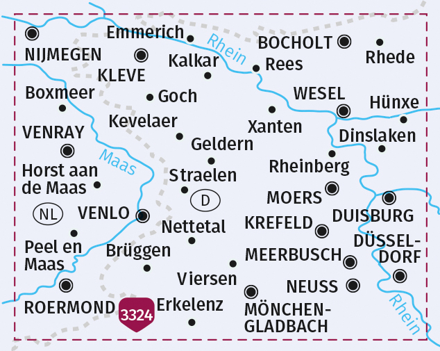 KOMPASS Fahrradkarte Niederrhein, Kleve, Wesel, Krefeld, Mönchengladbach, Viersen 1:70.000, FK 3323