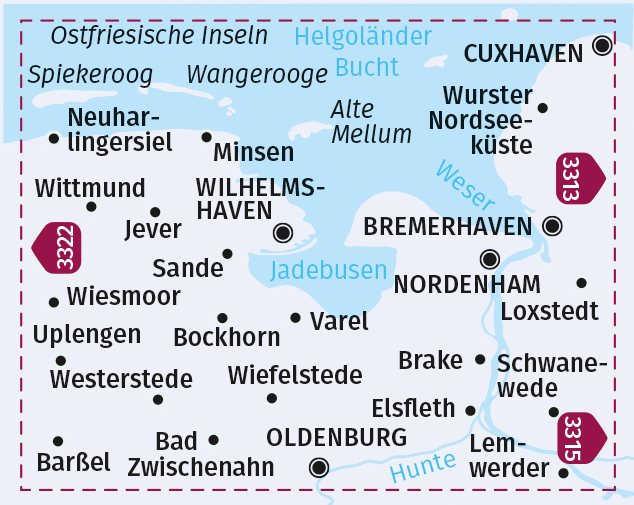 | Schlagworte | Bikekarte • Biketour • Fahrrad • Fahrradfahren • Fahrradführer • Fahrradkarte • Fahrradreise • Fahrradtour • Fernradweg • FK 3312 • Führer • Jadebusen • Karte • Kompass • Outdoor • Rad • radfahren • Radführer • Radkarte • Radreise • Radtour • Radwanderkarte • Radwandern • Radwege • Radwegenetz • reißfest • Streckenkarte • Wangerland • wetterfest • Wilhelmshaven |