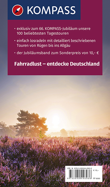 Mit dem Titel FAHRRADLUST hat KOMPASS 2018 die Verkaufslisten angeführt. Erstmals sind in dem Sammelband unsere 100 beliebtesten Tagestouren von Rügen bis ins Allgäu erhältlich. Detailliert beschriebene Touren für "Pedalritter und eBike-Entdecker" laden dazu ein, Deutschland zu erradeln