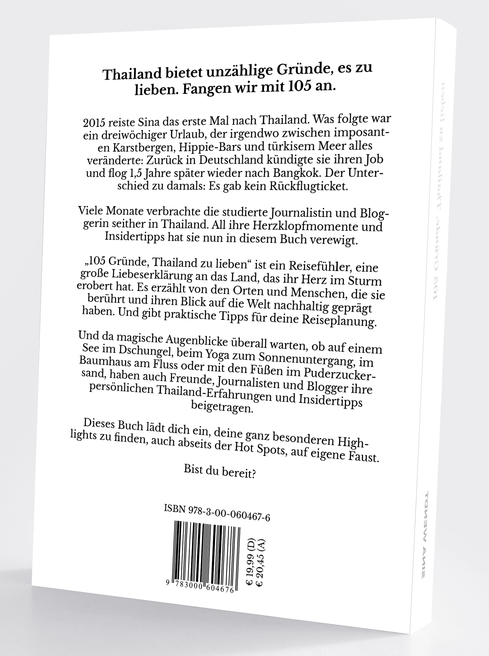 Während ihrer ersten Thailand-Reise, irgendwo zwischen Karstbergen, Hippiestränden, Garküchen und herzlichen Menschen, verliebte sich Sina Hals über Kopf in das südostasiatische Land. 1,5 Jahre später flog sie wieder nach Bangkok. Der Unterschied zu damals: Es gab kein Rückflugticket.
