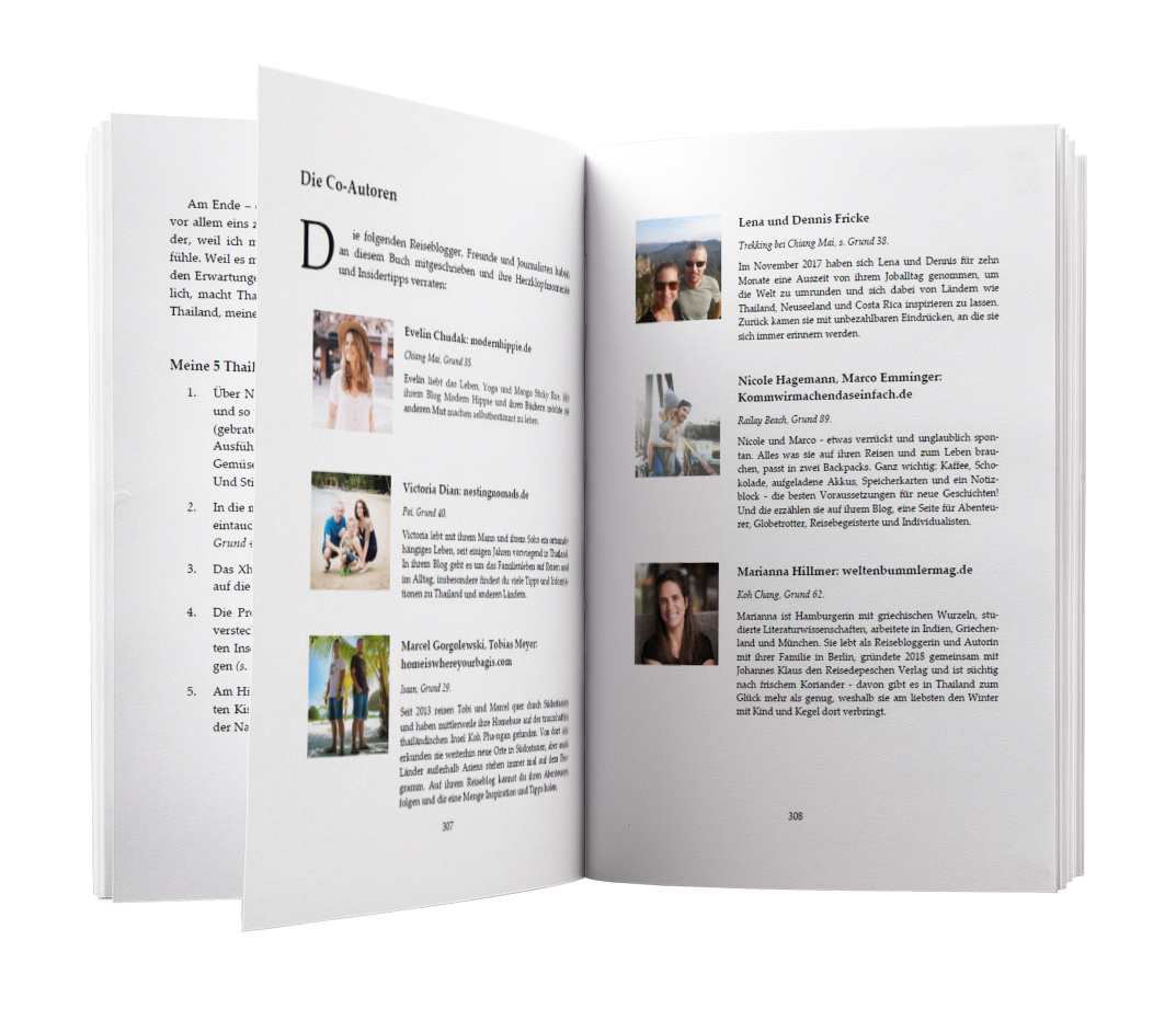 Auf über 300 Seiten erzählen dir die Autoren von magischen Momenten in Thailand und nehmen dich mit an die Orte, die sie wirklich berührt und begeistert haben. Ob du wandern oder Yoga machen möchtest, über Inseln oder Berge hüpfen willst, Tempel erkunden oder einfach nur die Ruhe suchst, in diesem Buch findest du das, was du brauchst und noch ein bisschen mehr: