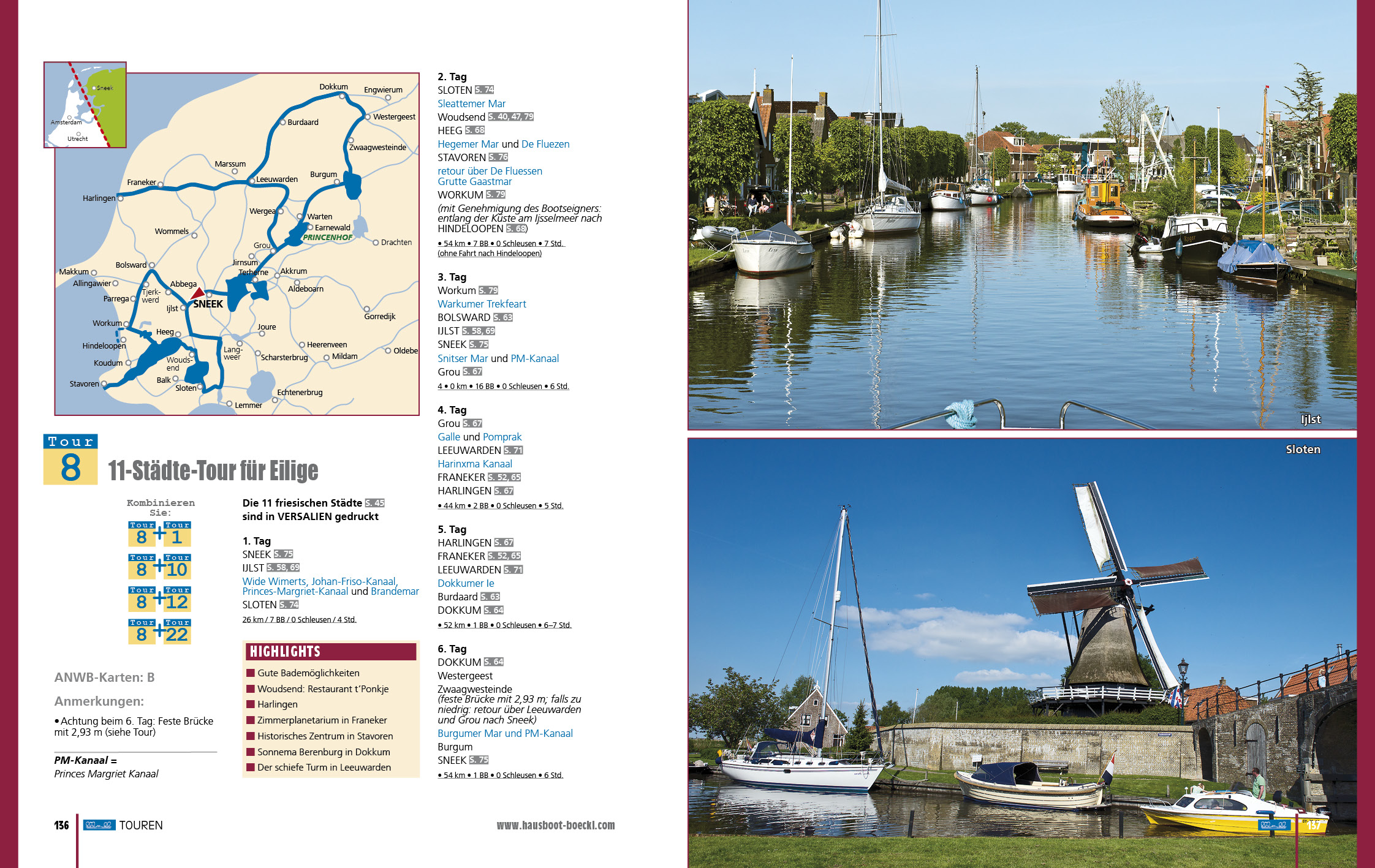 Tourentipps: 22 Module für mehr als 100 individuelle Touren, inkl. Details zu Brücken, Schleusen und Öffnungszeiten