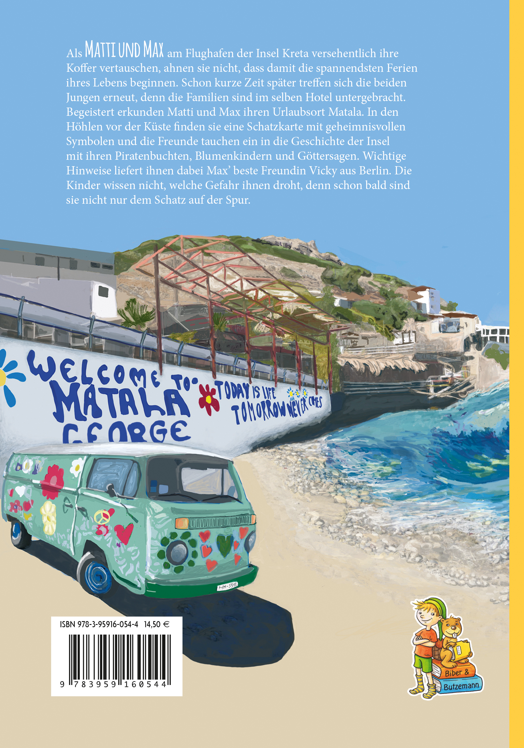 Als Matti und Max am Flughafen der Insel Kreta versehentlich ihre Koffer vertauschen, ahnen sie nicht, dass damit die spannendsten Ferien ihres Lebens beginnen. Schon kurze Zeit später treffen sich die beiden Jungen erneut, denn die Familien sind im selben Hotel untergebracht. Begeistert erkunden Matti und Max ihren Urlaubsort Matala. In den Höhlen vor der Küste finden sie eine Schatzkarte mit geheimnisvollen Symbolen und die Freunde tauchen ein in die Geschichte der Insel mit ihren Piratenbuchten, Blumenkindern und Göttersagen. Wichtige Hinweise liefert ihnen dabei Max' beste Freundin Vicky aus Berlin. Die Kinder ahnen nicht, welche Gefahr ihnen droht, denn schon bald sind sie nicht nur dem Schatz auf der Spur.