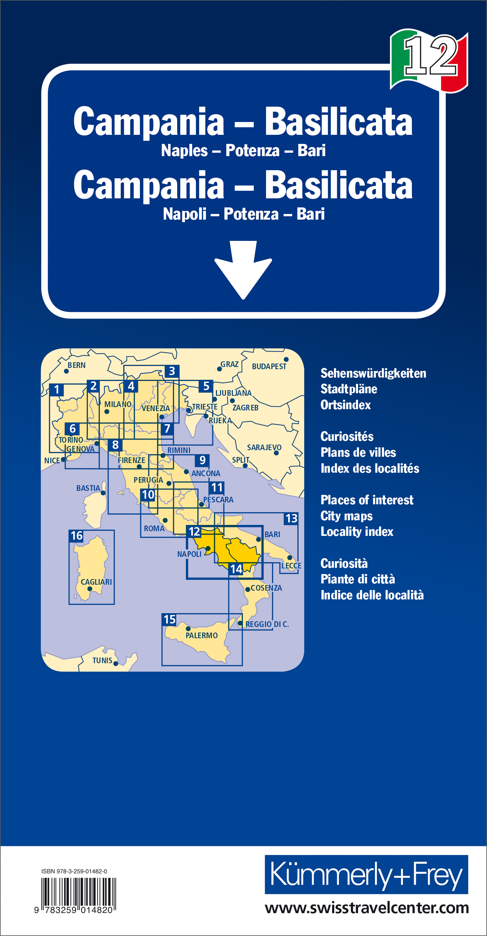 | Schlagworte | 1:200000 • Bari • Benevento • Cerignola • Foggia • Italien • Kampanien-Basilicata • Kümmerly+Frey • Lagonegrese • Minervino • Murgia • Neapel • Piana di Metaponto • Potenza • Reisekarte • Vallo di Diano |