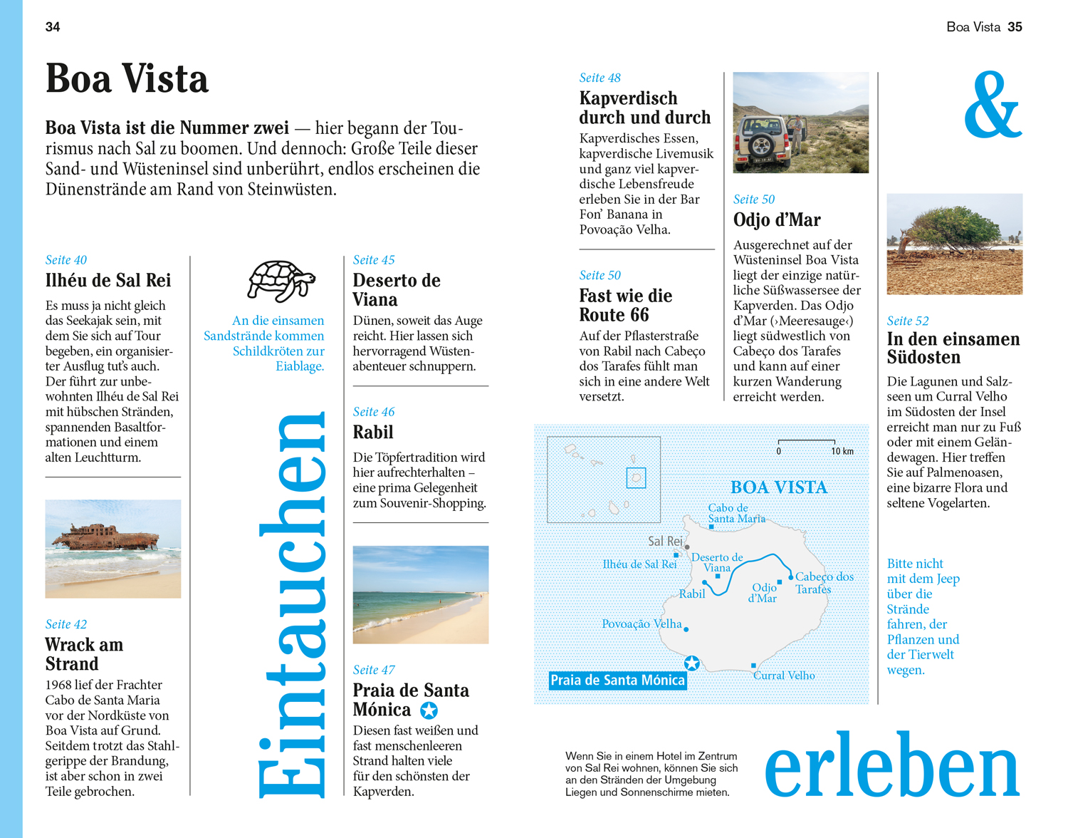 Senkrechtstarter, Überflieger, Querfeldein. Vor Ort - die Kapitel: Sal, Boa Vista, São Nicolau, São Vicente, Santo Antão, Santiago und Maio, Fogo und Brava. Das Kleingedruckte (Reiseinfos von A bis Z). Das Magazin. Offene Fragen.
