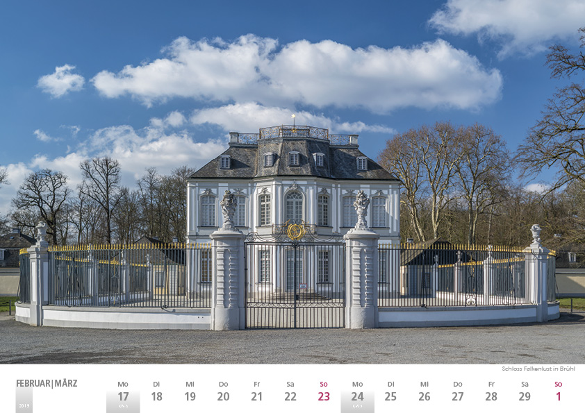 | Schlagworte | Aussicht vom Fünfseenblick-Aussichtsturm bei Detzem • Bergisches Land • Bernkastel-Kues • Bildkalender • Blick vom Drachenfels ins Rheintal • Burg Bergerhausen in Kerpen • Ehemalige Stiftskirche St. Chrysanthus und Daria in Bad Münstereifel • Ehrbachklamm bei Mehrmuth im Hunsrück • Fotokalender • Freusburg bei Kirchen/Sieg • Gerricusplatz mit Gerricusbrunnen und Basilika St. Margareta in Düsseldorf-Gerresheim • Gottesanbeterin am Bausenberg bei Niederzissen • Hallenhaus auf der Halde Norddeutschland bei Neukirchen-Vluyen • Heilige Stiege auf dem Kreuzberg in Bonn • Hiesfelder Mühlenmuseum in Dinslaken • Kaiserin-Augusta-Denkmal in Koblenz • Kalender • Kellener Altrhein am Aldenhof bei Kleve • Kleiner Wolfstein bei Bad Marienberg • Kloster Steinfeld in Kall-Steinfeld • Laacher See • Missionshaus der Steyler Missionare in St. Wendel • Missionshaus St. Augustin • Niederheimbach • Pförtner I mit Bayerkreuz in Leverkusen • Quirinus Münster in Neuss • Rheinland • Schloss Bensberg in Bergisch Gladbach • Schloss Falkenlust in Brühl • Schwalbenschwanz in der Wittlicher Senke • St. Peter in Sinzig • Trautzberger Maar bei Strohn • Wald der blauen Blumen bei Hückelhoven • Wandkalender |