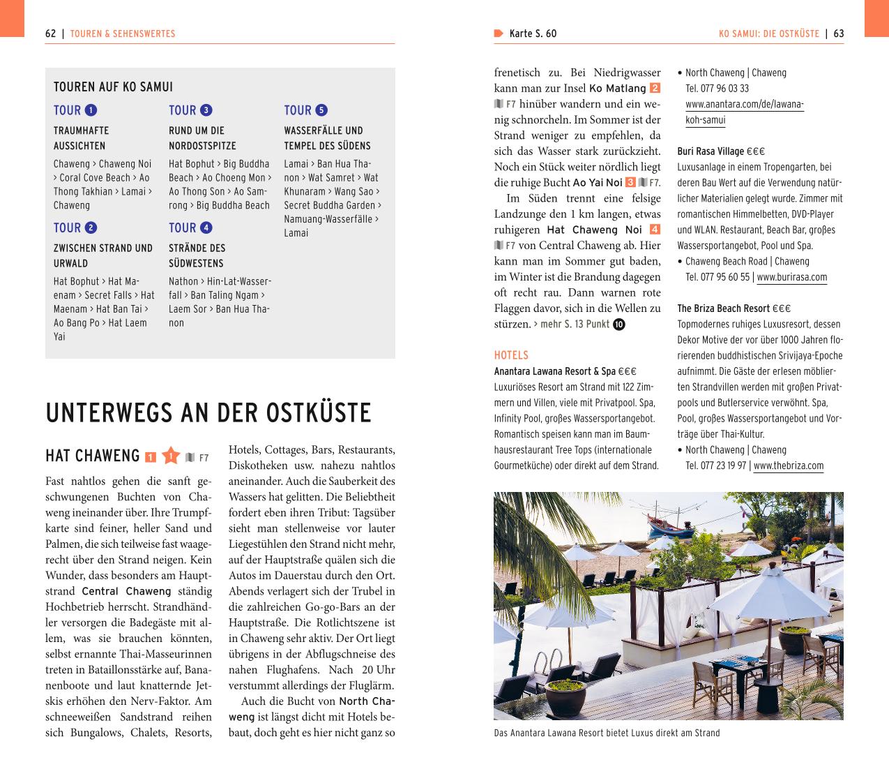 Mit dem POLYGLOTT on tour Ko Samui, Ko Phangan, Ko Tao lässt sich der Herzschlag der thailändischen Inseln erspüren. Der Autor Wolfgang Rössig führt in elf ausgeklügelten Touren durch die Vielseitigkeit der Inseln und lässt Sie Typisches, Besonderes und Eigenheiten entdecken. Lernen Sie den Golf von Thailand hautnah kennen. Entspannen Sie an den weißen Sandstränden unter Palmen, besichtigen Sie die beeindruckenden Wasserfälle und Schnorcheln Sie in der traumhaften Unterwasserwelt. Sicher können Sie sich dem tropischen Flair der Inseln bald nicht mehr entziehen. Dank individueller Tipps können Sie ausprobieren und eintauchen, mitten hinein ins Leben auf Ko Samui, Ko Phangan und Ko Tao.