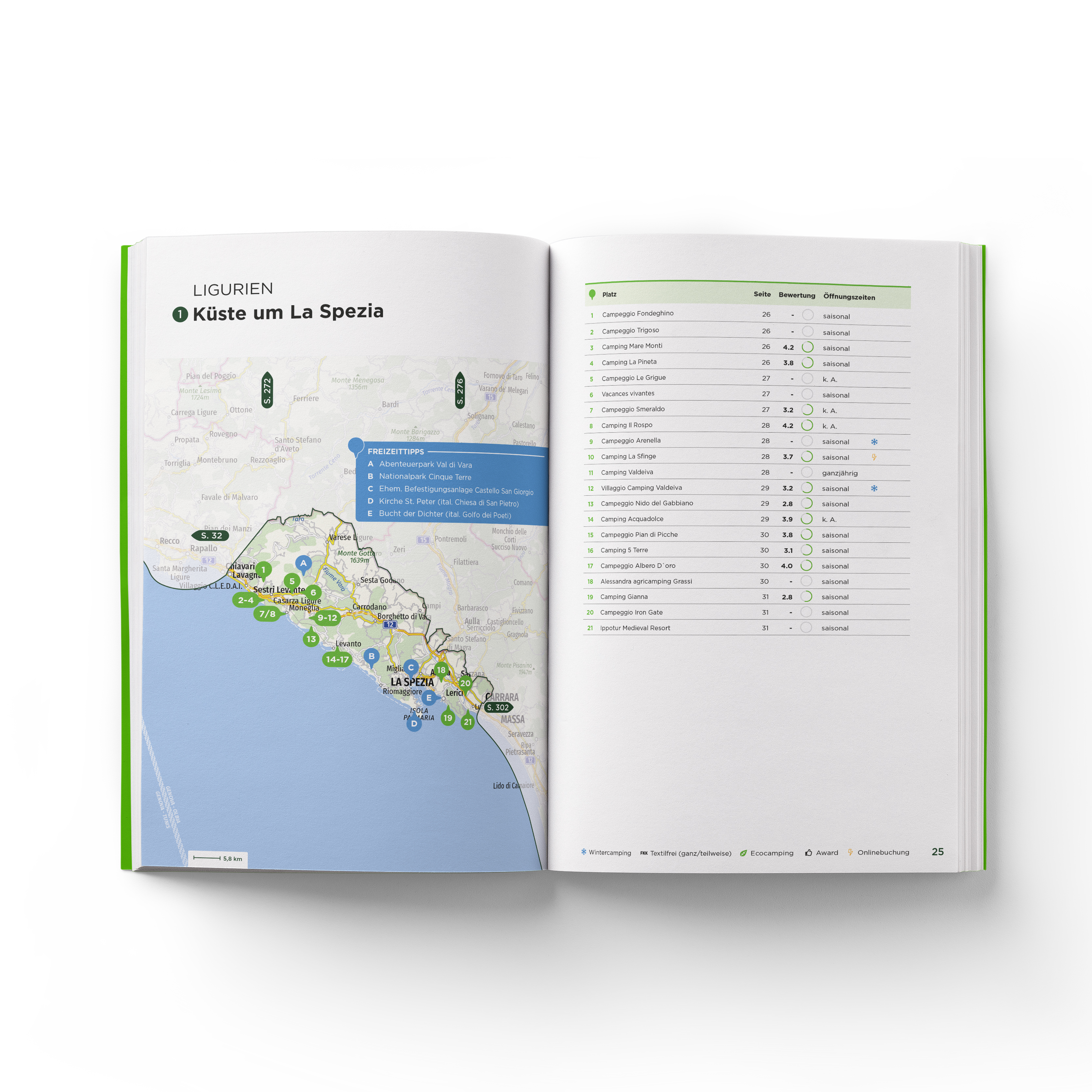 Man findet darin 1.064 Campingplätze in ganz Italien. Die Beurteilungen erfolgen auf der Grundlage von 22.681 Gästebewertungen. Das Buch ist besonders hilfreich, da die Redaktion von Camping.info auf Folgendes geachtet hat: