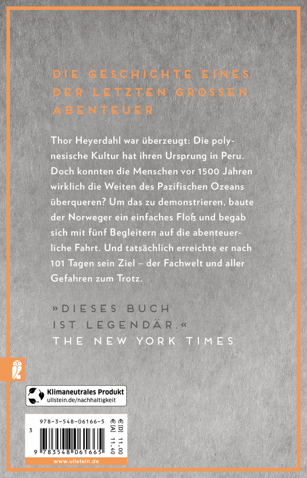 Thor Heyerdahl war überzeugt: Die polynesische Kultur hat ihren Ursprung in Peru. Doch konnten die Menschen vor 1500 Jahren wirklich die Weiten des Pazifischen Ozeans überqueren?Um das zu demonstrieren, baute der Norweger ein einfaches Floß und begab sich mitfünf Begleitern auf die abenteuerliche Fahrt. Und tatsächlich erreichte er nach 101 Tagensein Ziel - der Fachwelt und aller Gefahren zum Trotz.