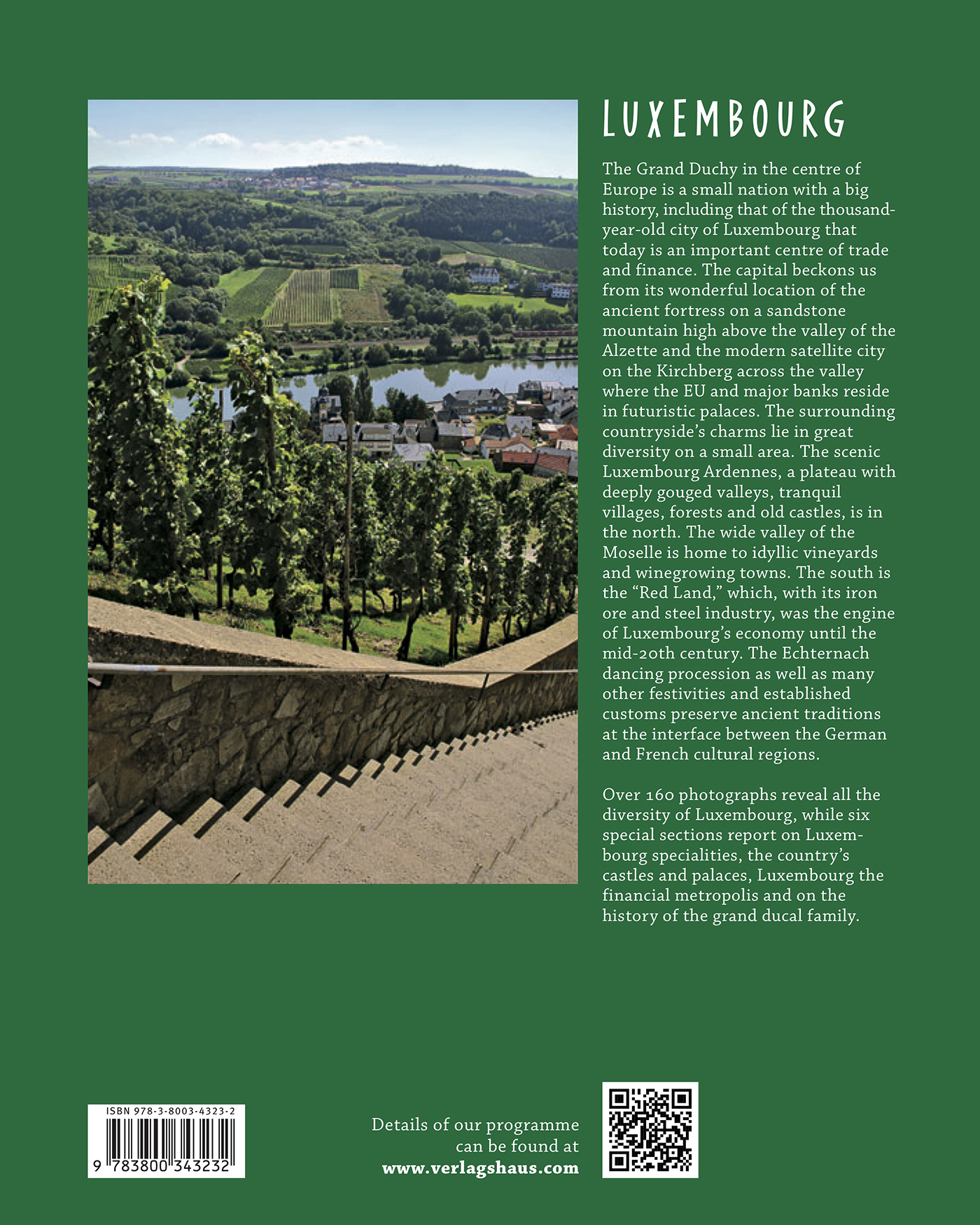 | Schlagworte | Alzette • Bildband • Bockfelsen • Bourglinster • Clervaux • Clerve • Echternach • Ehnen • Esch-sur-Alzette • Esch-sur-Sûre • Europa • Großherzogtum • Gutland • Kirchberg • Kleine Luxemburgische Schweiz • Kulturhauptstadt • Luxemburg • Luxemburger Schweiz • Luxemburg Stadt • Mersch • Mosel • Naturpark Obersauer • Ösling • Palais grand-ducal • Pétrusse • Reisebildband • Remich • Sauer • Vianden • Wormeldange |