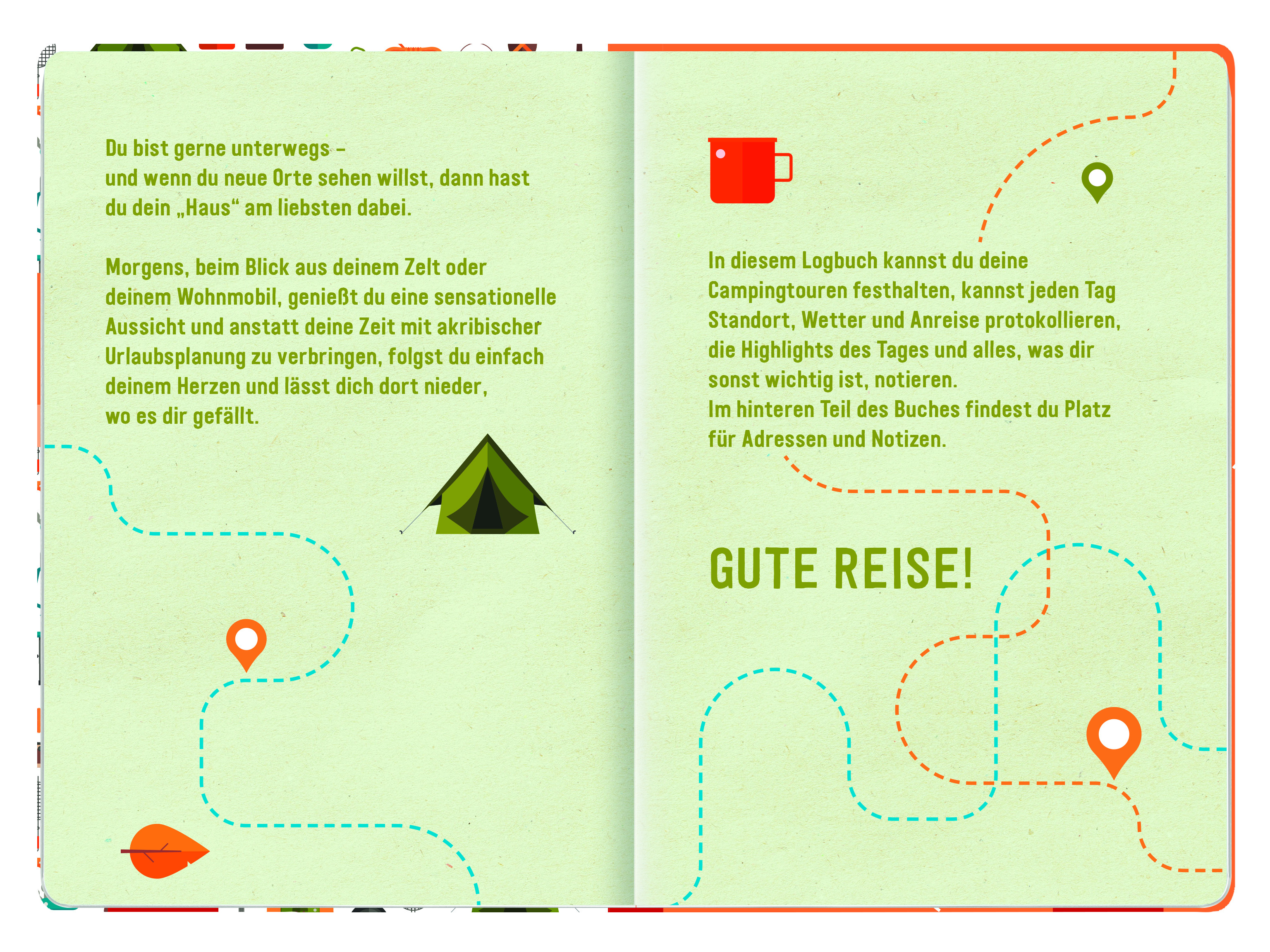 - Platz zum Aufschreiben der täglichen Erlebnisse von bis zu 21 Campingplätzen