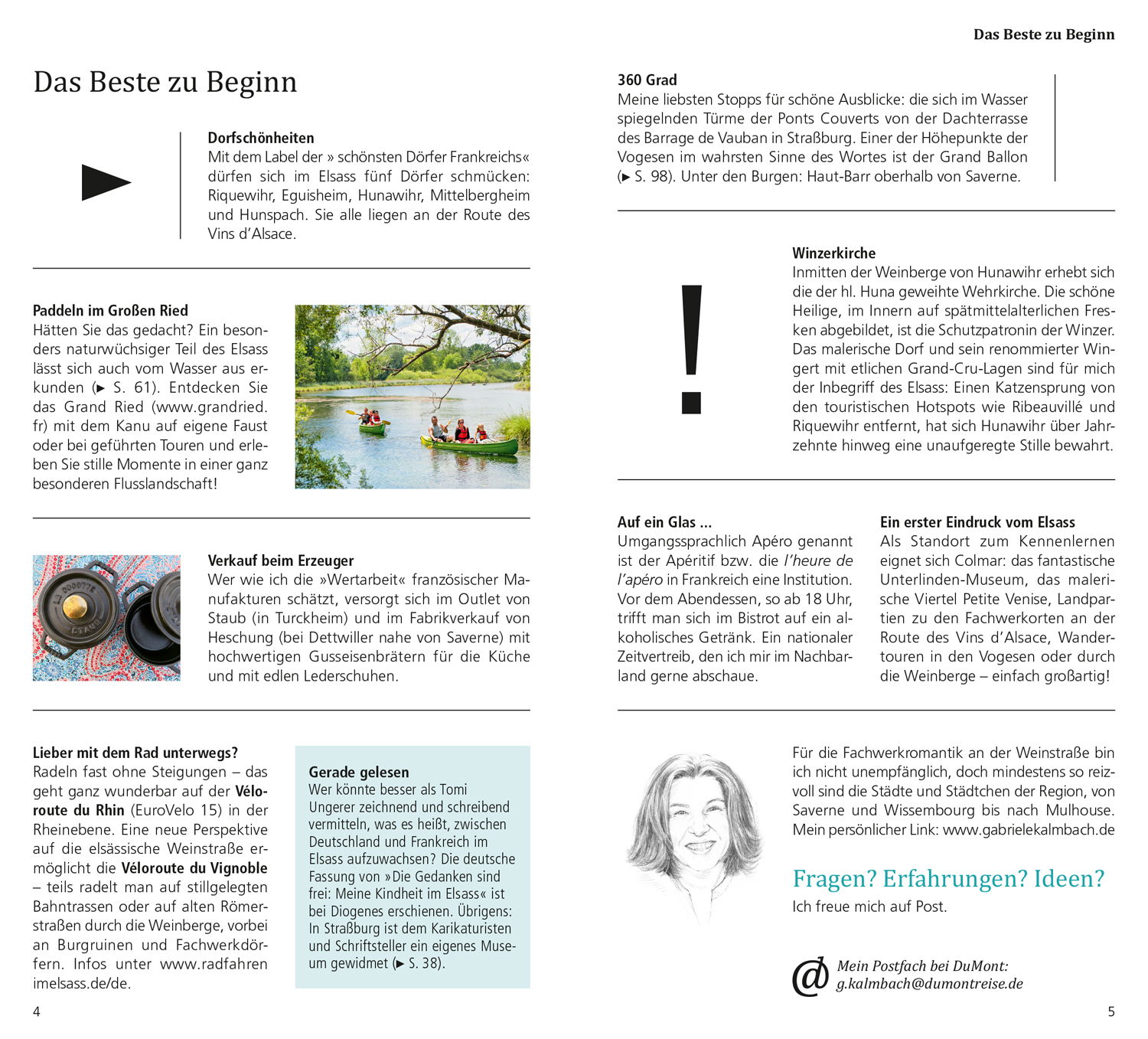 Das Beste zu Beginn. Das ist das Elsass. Das Elsass in Zahlen. So schmeckt das Elsass. Ihr Elsass-Kompass: Das Nordelsass, Straßburg, Die Weinstraße, Colmar und Umgebung, Mulhouse, Südvogesen und Sundgau. Hin & weg. O-Ton Elsass. Kennen Sie die?