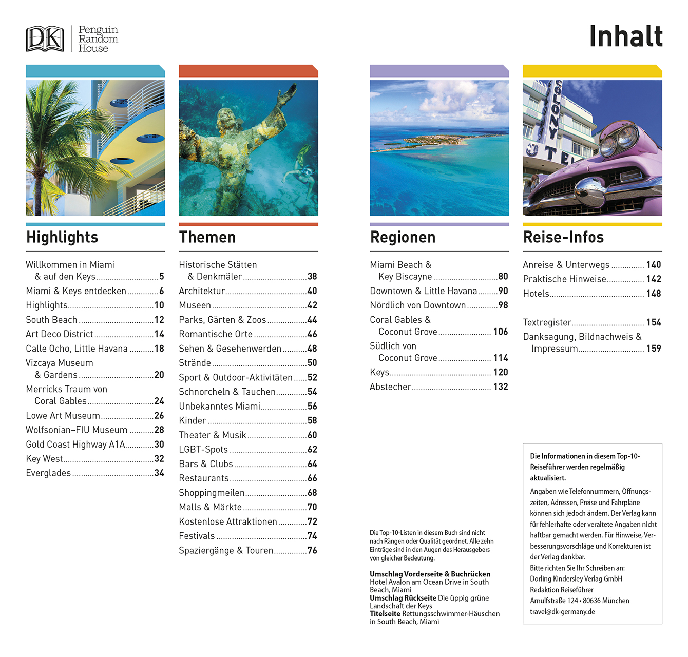 Top 10 Reiseführer Miami & Keys Ihr kompakter Begleiter zu den interessantesten Orten Miamis mit den wichtigsten Top-10-Highlights und vielen praktischen Top-10-Listen zur schnellen und einfachen Orientierung vor Ort. Im Reiseführer Miami & Keys bekommen Sie einen perfekten Überblick zu Miamis Sehenswürdigkeiten, Museen, Stränden, Festivals, zu den besten Shops, Restaurants und Bars. Außerdem im Top 10 Reiseführer Miami & Keys: Spaziergänge, Vorschläge für Tagestouren rund um Miami, anschauliche Stadtteil- und Regionalkarten, Extrakarte und visueller Kulinarik-Sprachführer zum Herausnehmen. Erleben Sie Miami und die Keys!