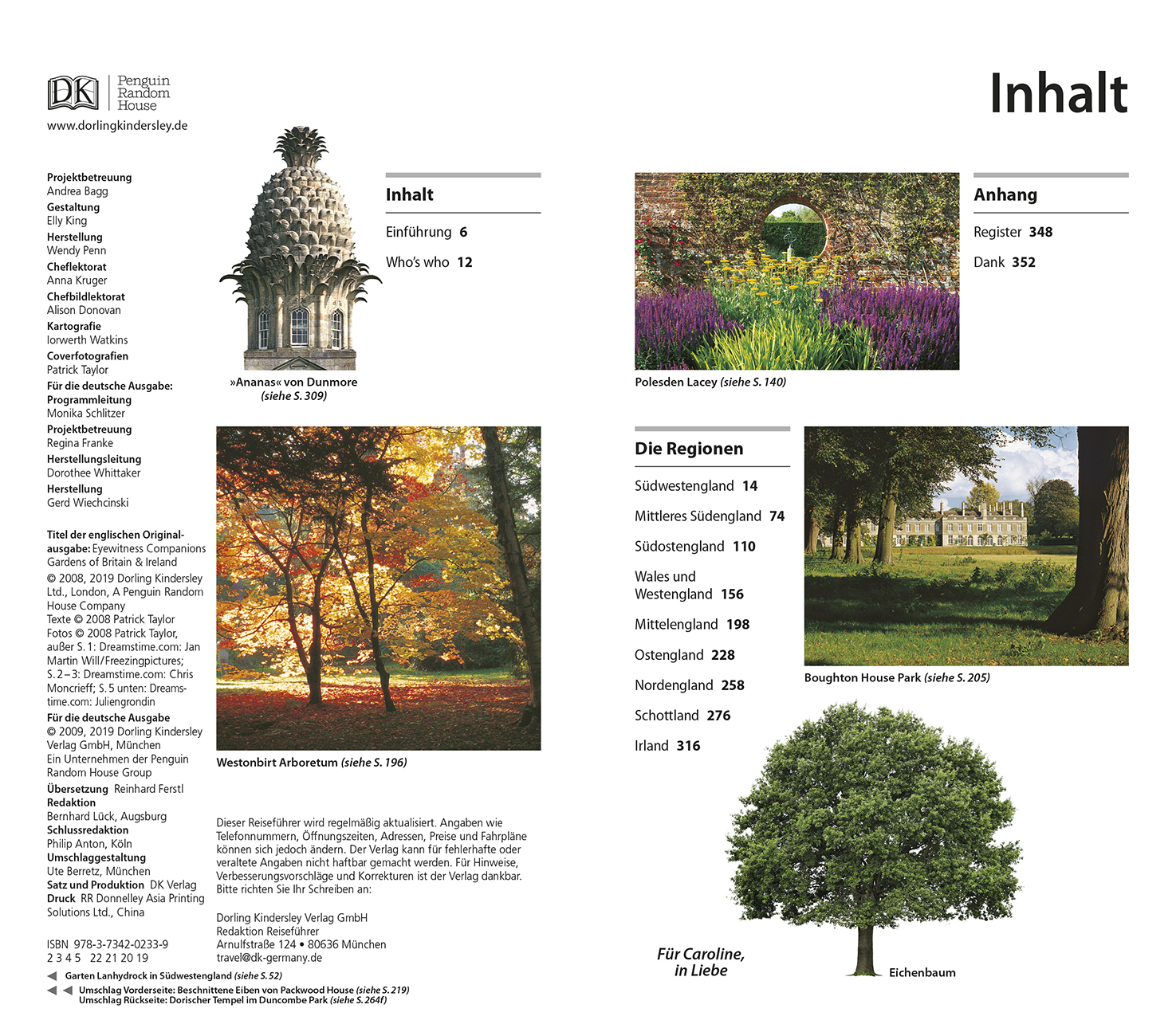 Jedes der neun Kapitel zu den Regionen Südwestengland, Mittleres Südengland, Südostengland, Wales & Westengland, Mittelengland, Ostengland, Nordengland, Schottland und Irland beginnt mit einer übersichtlichen Karte, auf der alle Gärten der Region eingezeichnet sind. So lässt sich eine Reise zu den Gärten Großbritanniens und Irland bestens planen.